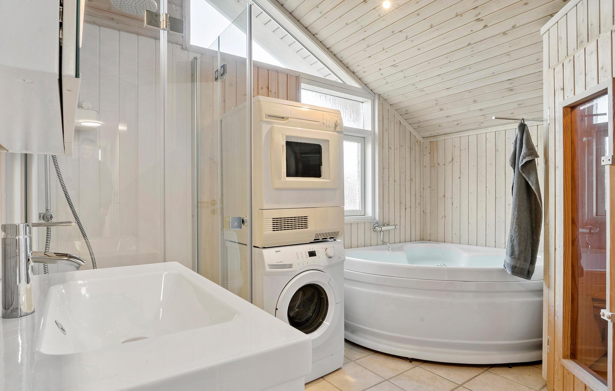 Velkommen til den hyggelige atmosfære i dette komfortable feriehus, hvor I kan se frem til en afslappende pause fra hverdagen. Forkæl jer selv med afslappende stunder i spabadet eller saunaen, nyd dagens måltider i den stilfulde spisestue og glæd jer til hyggelige madlavningsaftener i det indbydende køkken. Brændeovnen spreder ekstra hygge og varme om aftenen, når I har sat jer til rette i sofaen og hygger med brætspil eller en god feriekrimi.