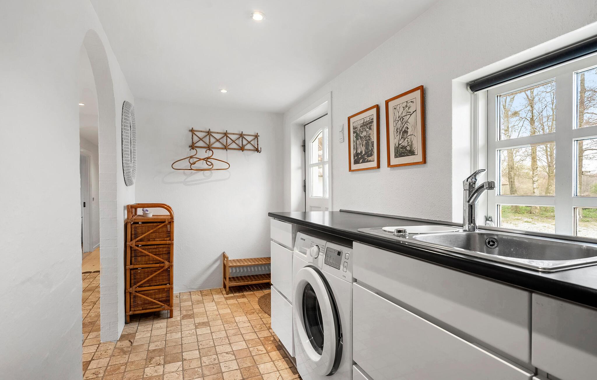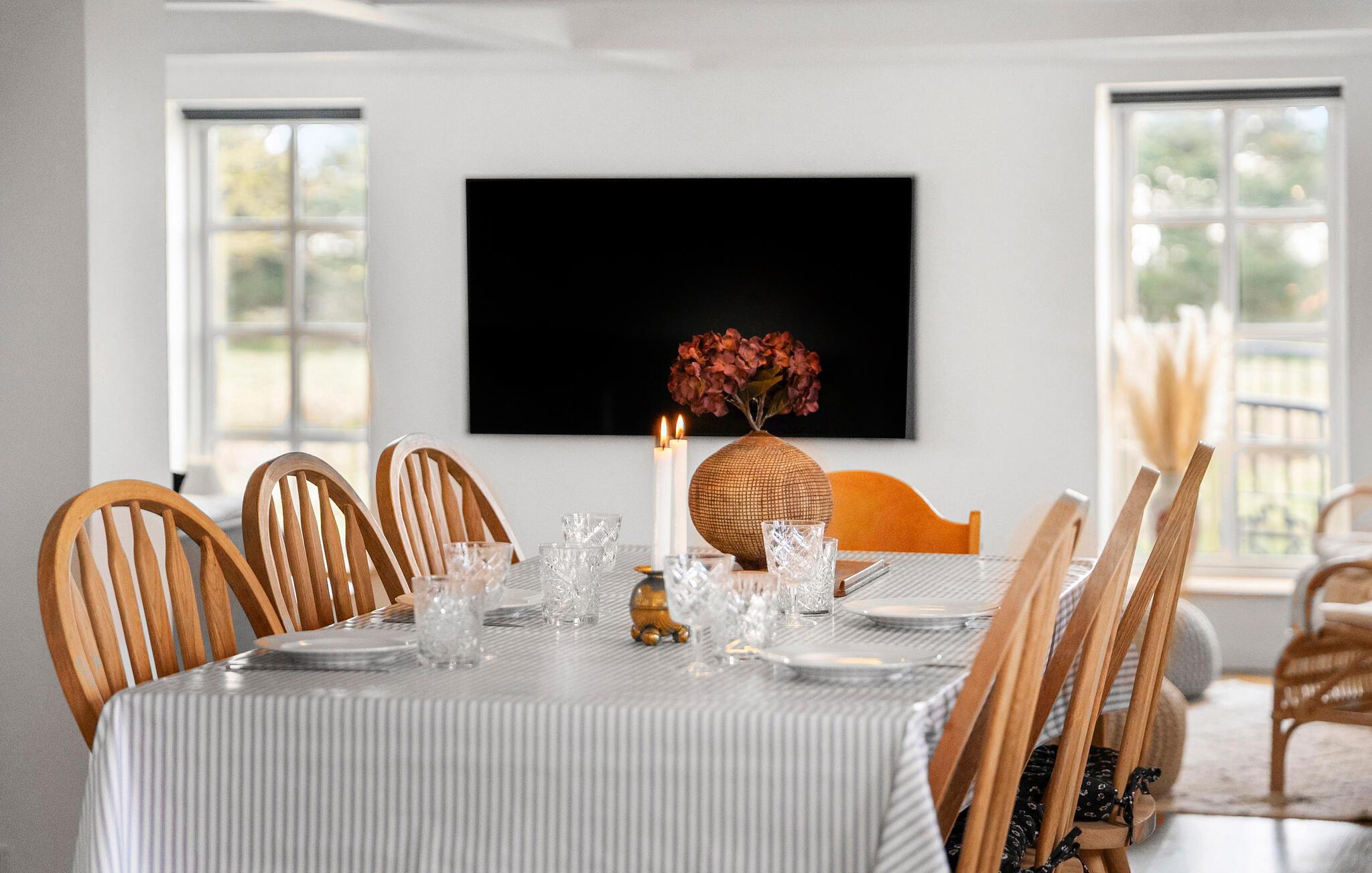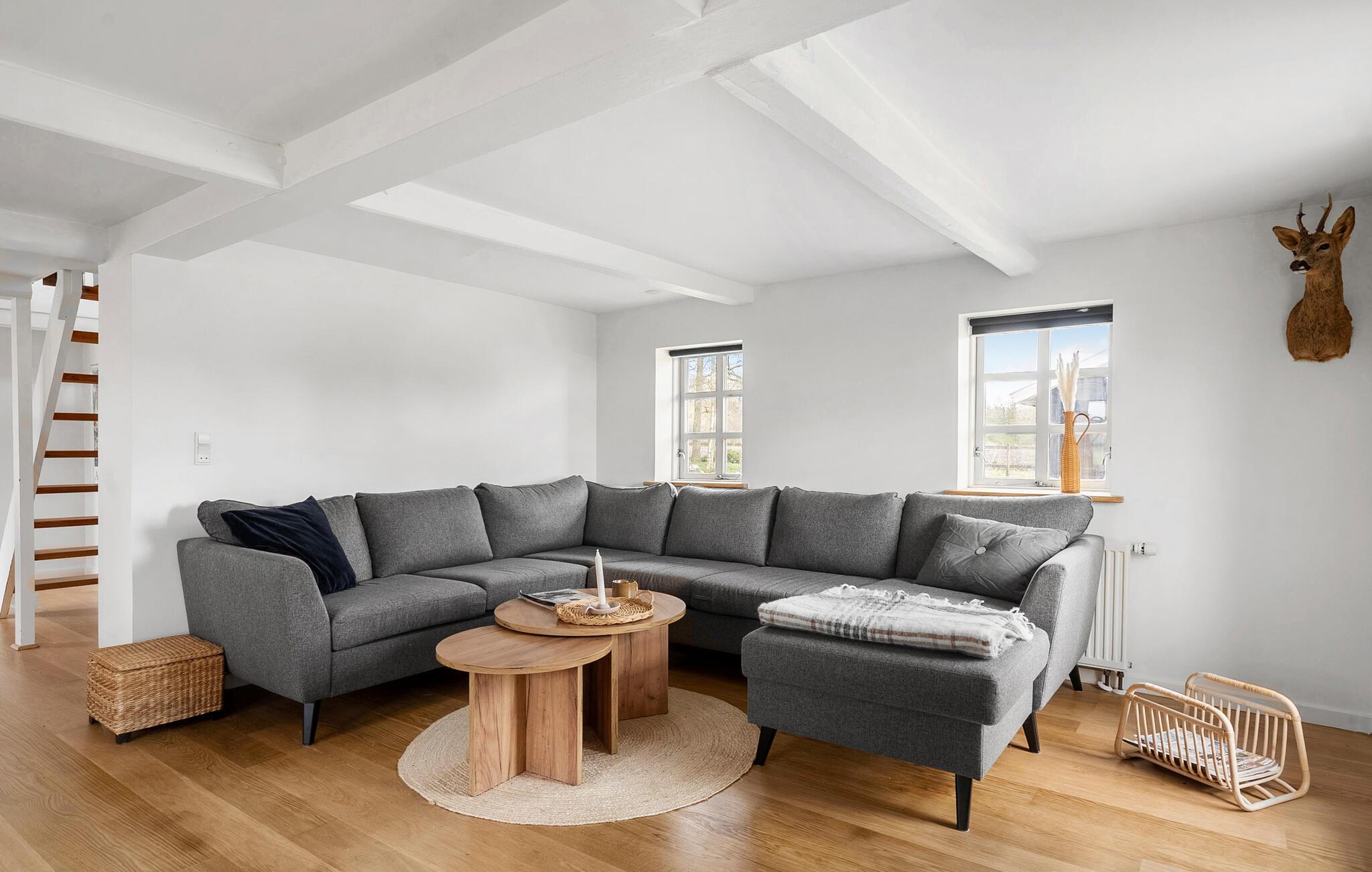 Forkæl jer selv med en pause fra hverdagen og nyd charmen ved et skønt landsted med moderne bekvemmeligheder, kun en kort tur fra stranden. Find jer til rette i de rummelige opholdsstuer. Huset kombinerer fint restaurerede detaljer med rene, moderne indretningsløsninger. Læn jer tilbage i det store sofahjørne med udsigt over haven eller tilbring hyggelige timer ved det lange spisebord. Lav maden sammen i det moderne køkken. På kølige dage sørger brændeovnen for behagelig varme og en rar atmosfære.