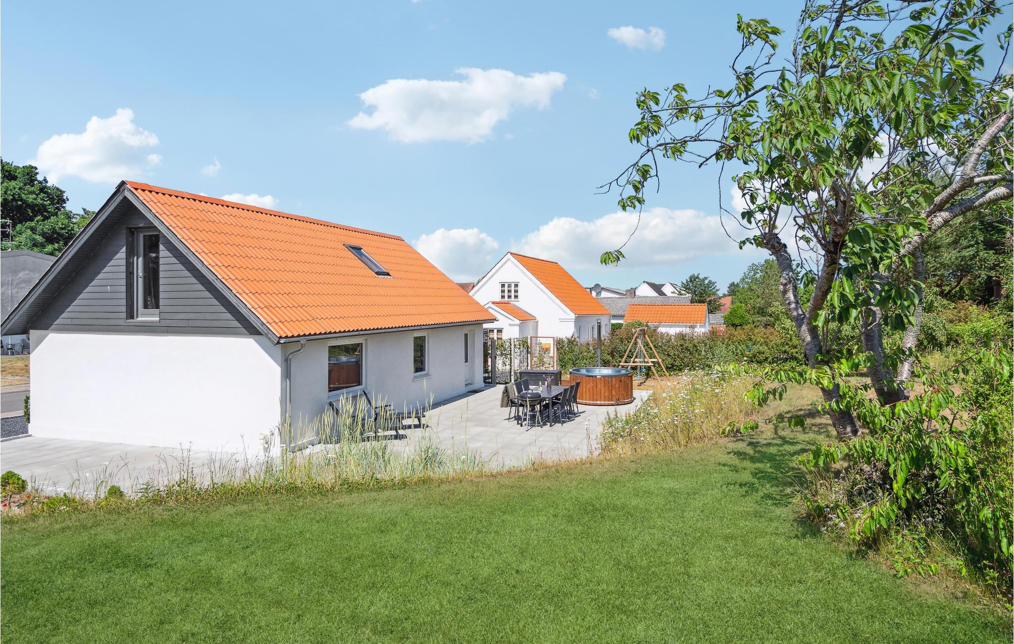 Moderne feriehus i Aså med vildmarksbad, stor terrasse og nærhed til strand og havn.