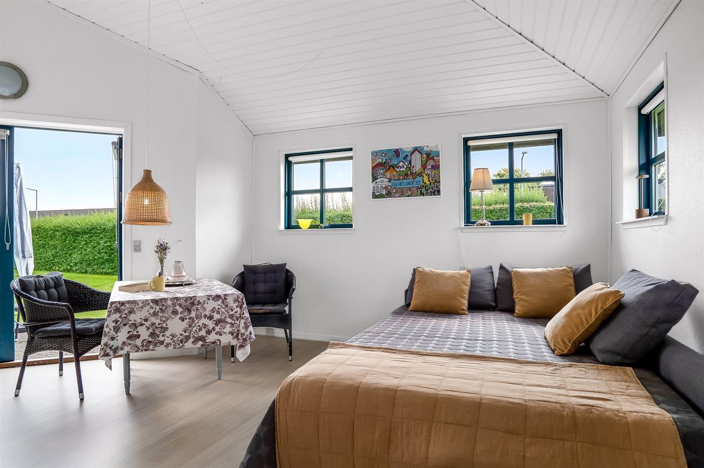 Sovepladserne fordeler sig på: 2 sovepladser i sovesofa (dobbelt).- Disse sovepladser befinder sig i stuen.