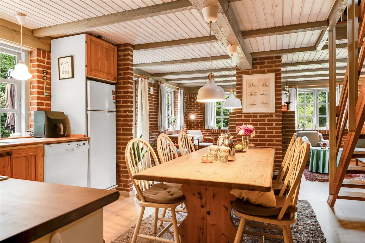 Køkkenet er udstyret med 2 køleskabe. Der er 4 keramiske kogeplader, varmluftovn, mikrobølgeovn, Airfryer samt opvaskemaskine.