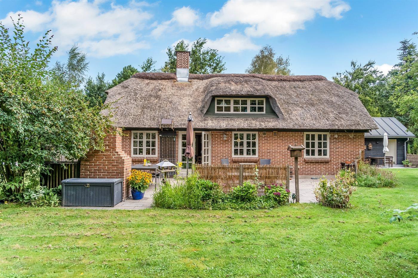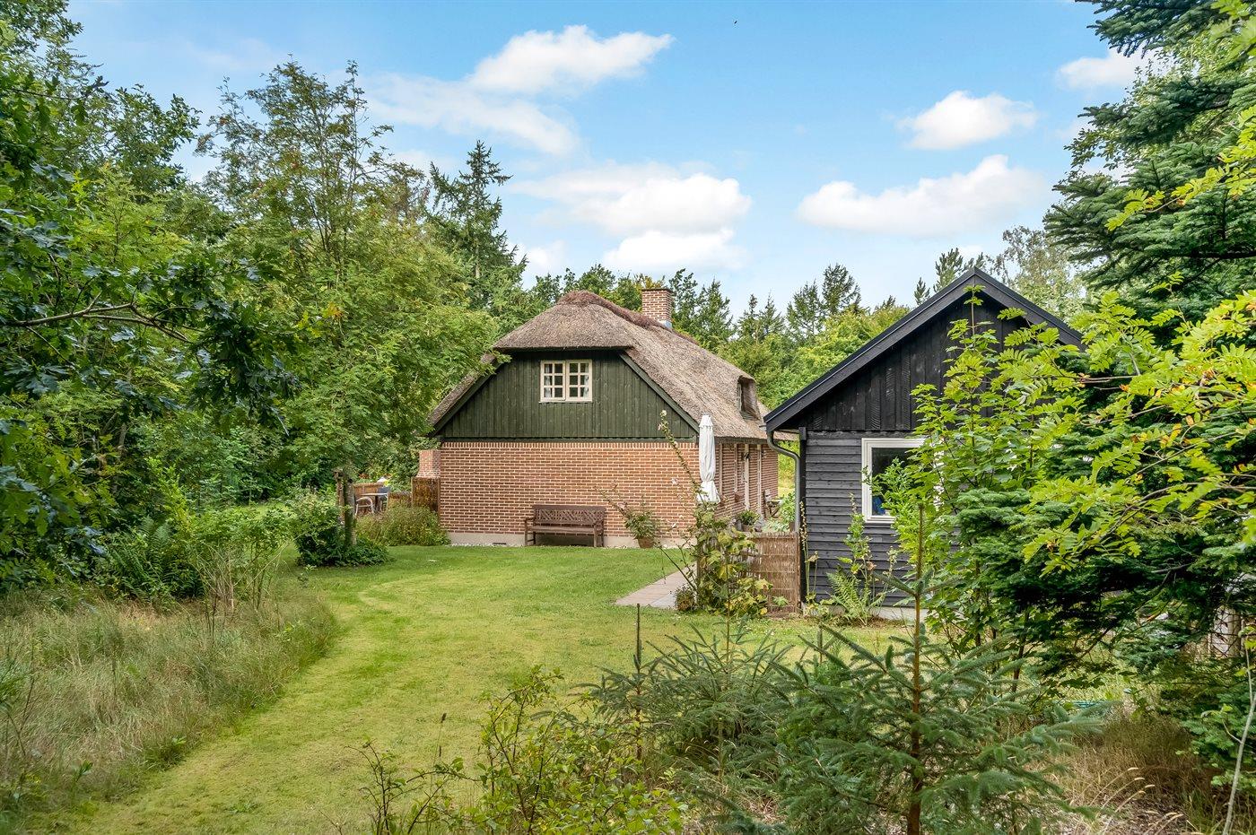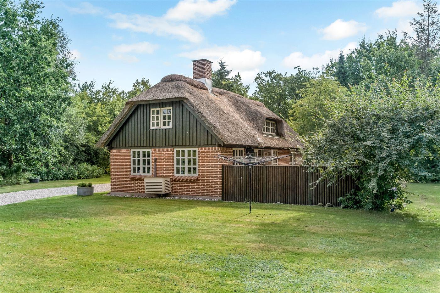 Et hyggeligt og charmerende, stråtækt sommerhus beliggende midt i den smukkeste natur. Her er du omgivet af ro og natur med vandrestier, å-løb og gode chancer for at opleve dyrelivet helt tæt på.