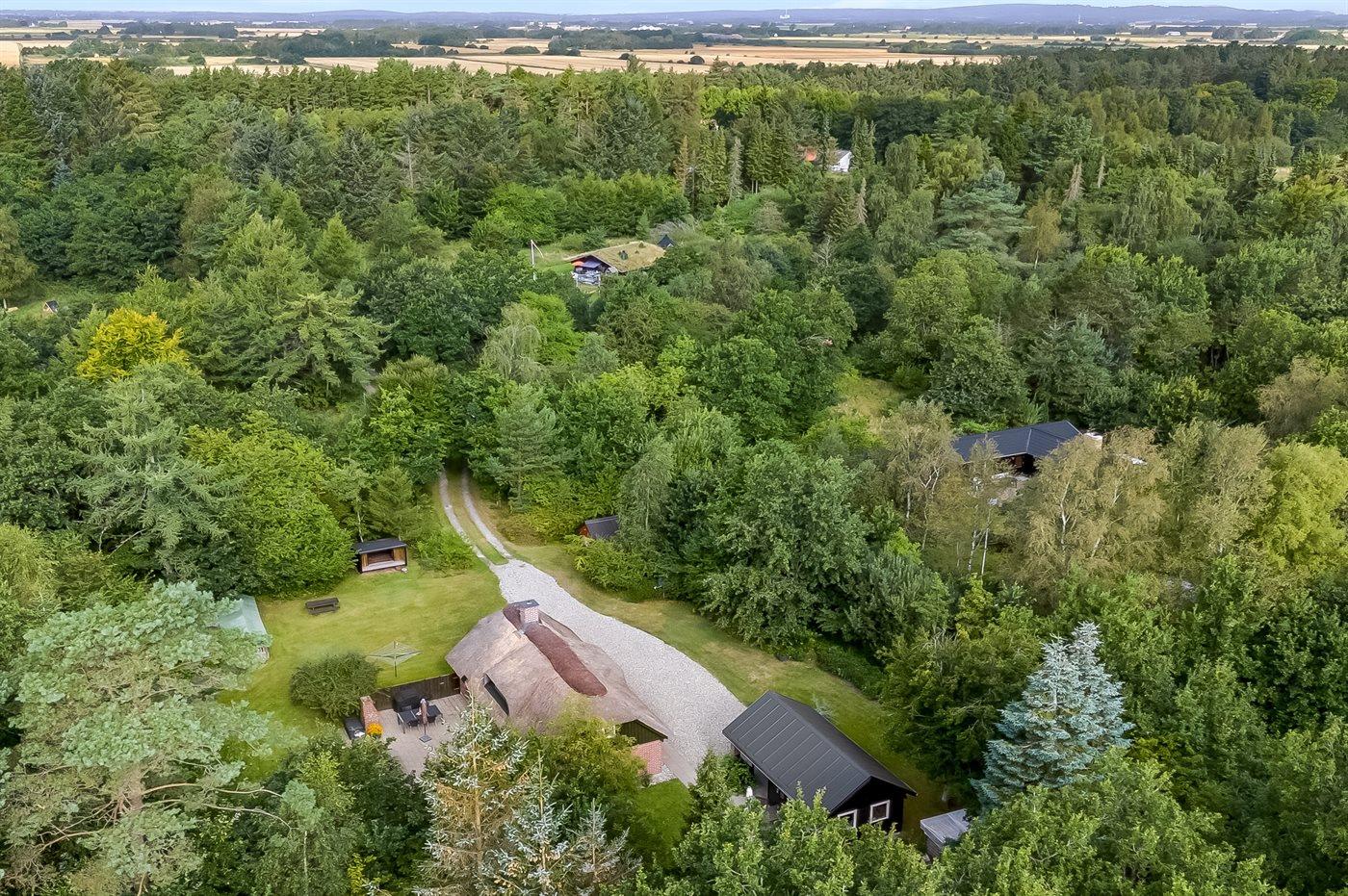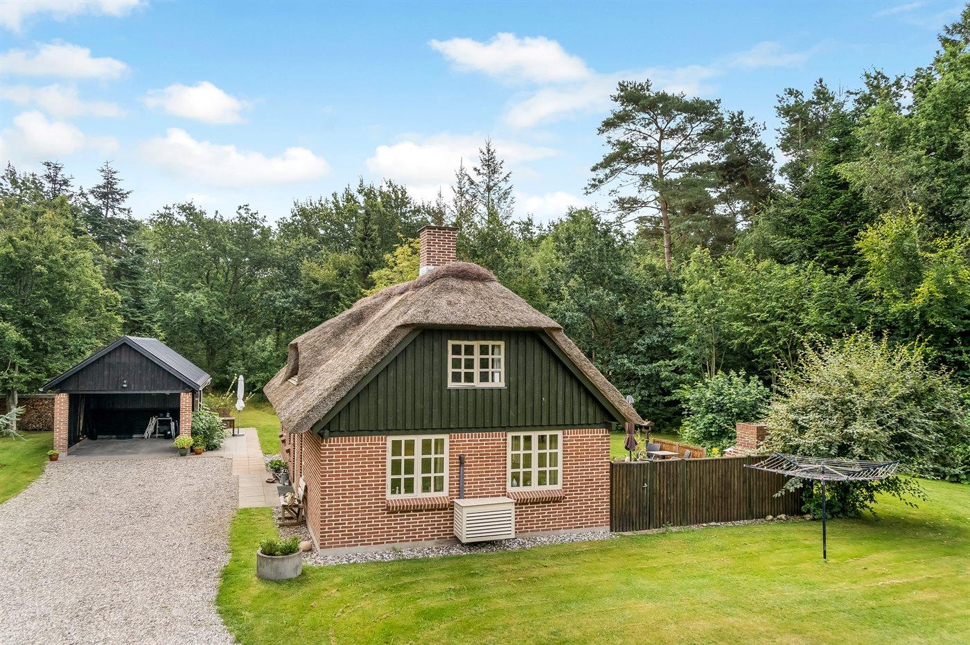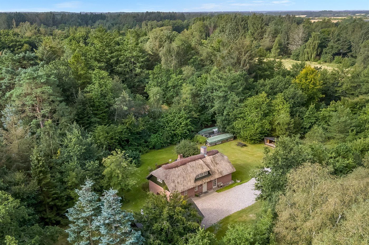 Et hyggeligt og charmerende, stråtækt sommerhus beliggende midt i den smukkeste natur. Her er du omgivet af ro og natur med vandrestier, å-løb og gode chancer for at opleve dyrelivet helt tæt på.