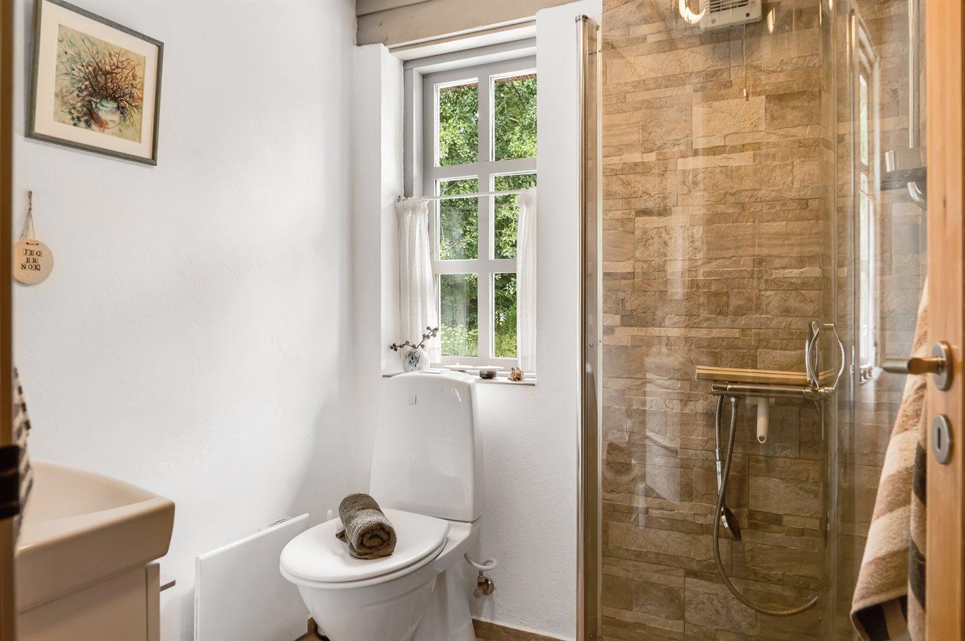 Der er 1 badeværelse med bruseniche og 1 toilet.. Der er gulvvarme på 1 badeværelse.