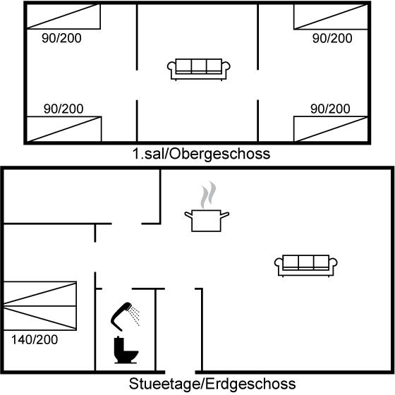 Der er i alt 3 soveværelser. Sovepladserne fordeler sig på: 2 sovepladser i dobbeltseng. 4 sovepladser i enkeltsenge.