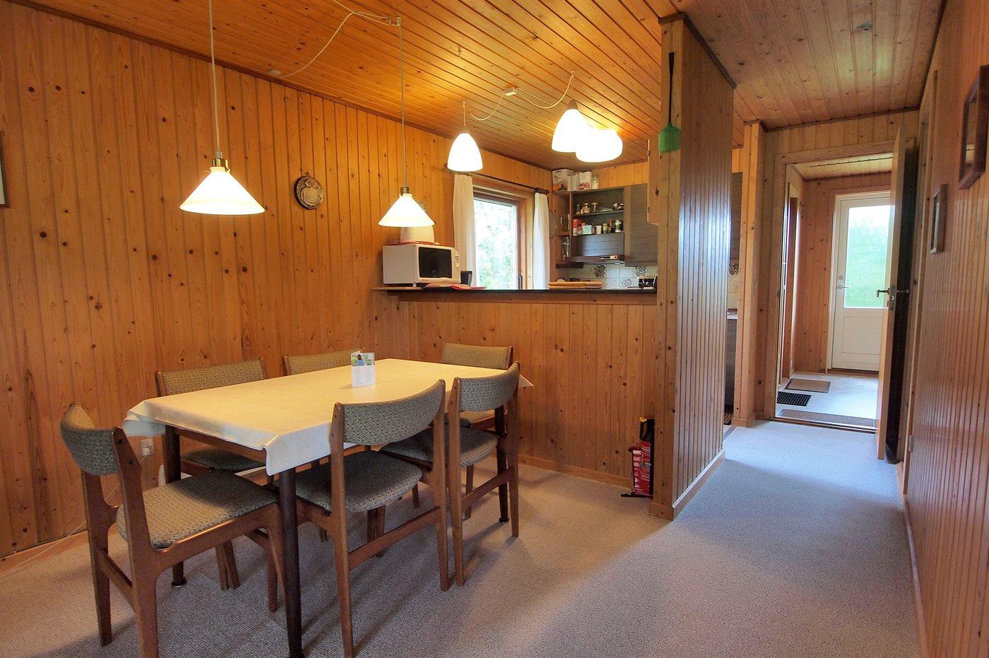 Fint sommerhus med meget god beliggenhed tæt på skøn lille havn. Sommerhuset på 66 m2, med 9 m2 overdækket terrasse, er fra 1979 og ligger på en 1200 m² stor havegrund. Ferieboligen er egnet til 6 personer over 3 år. Ferieboligen har vaskemaskine/tørretumbler i badeværelset, som har gulvvarme. Der er 200 m til havet. Nærmeste forretning er beliggende i en afstand af 200 m ved Hårbølle Havn med ny badebro. Desuden er der sandkasse, barnestol og redskabsrum med kuglegrill, lille fryser, ekstra køleskab, skab med ekstra køkkenudstyr, solseng, hynder, sportsudstyr og spil. Parkering ved ferieboligen. Der er i alt 2 soveværelser. Sovepladserne fordeler sig på: 2 sovepladser i dobbeltseng. 2 sovepladser i køjeseng. 2 sovepladser i sovesofa (dobbelt). Køkkenet er udstyret med 1 køleskab med en kapacitet på 120 liter. Der er komfur med 4 elkogeplader og bageovn, mikrobølgeovn samt opvaskemaskine. Der er 1 badeværelse med bruseniche og 1 toilet. I ferieboligen er der 1 stk. fladskærmsTV. Der er desuden 1 BlueRay/DVD/CD afspiller samt gratis trådløs internetforbindelse (fibernet 50/50 Mbit). Der er 8 danske kanaler og tillige ca. 80 tyske, ca. 14 engelske og en masse internationale kanaler. Det er ikke tilladt at medbringe husdyr. Der er installeret energivenlig luft til luft varmepumpe.