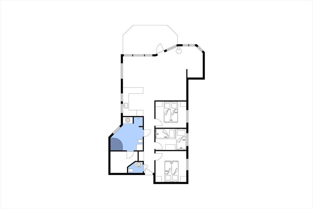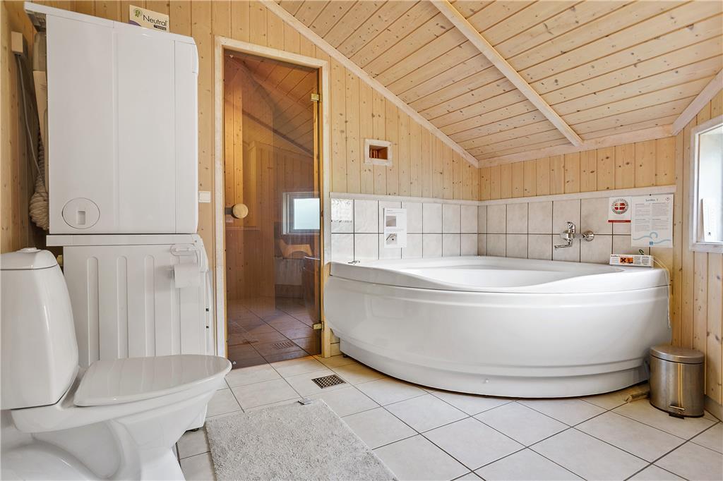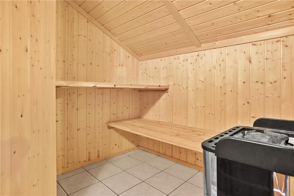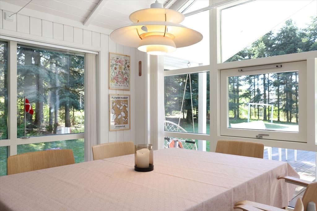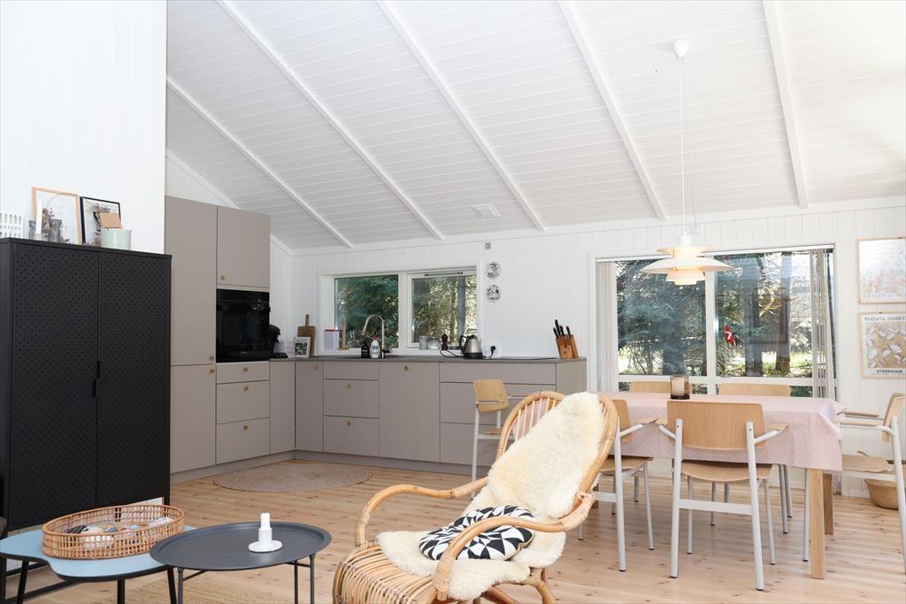Den lyse og rummelige stue med loft til kip har vinduer på alle sider, så du fra det åbne køkken kan følge med både indendørs og udendørs, mens du sætter morgenkaffen over. Ved spisebordet kan I indtage morgenmaden og senere på dagen sidde og spille et spil. I den bløde sofa eller alkoven ved siden af kan du slappe af med en god bog. Har I været på en god travetur langs stranden, er det rart med en tur i sauna og spabad.