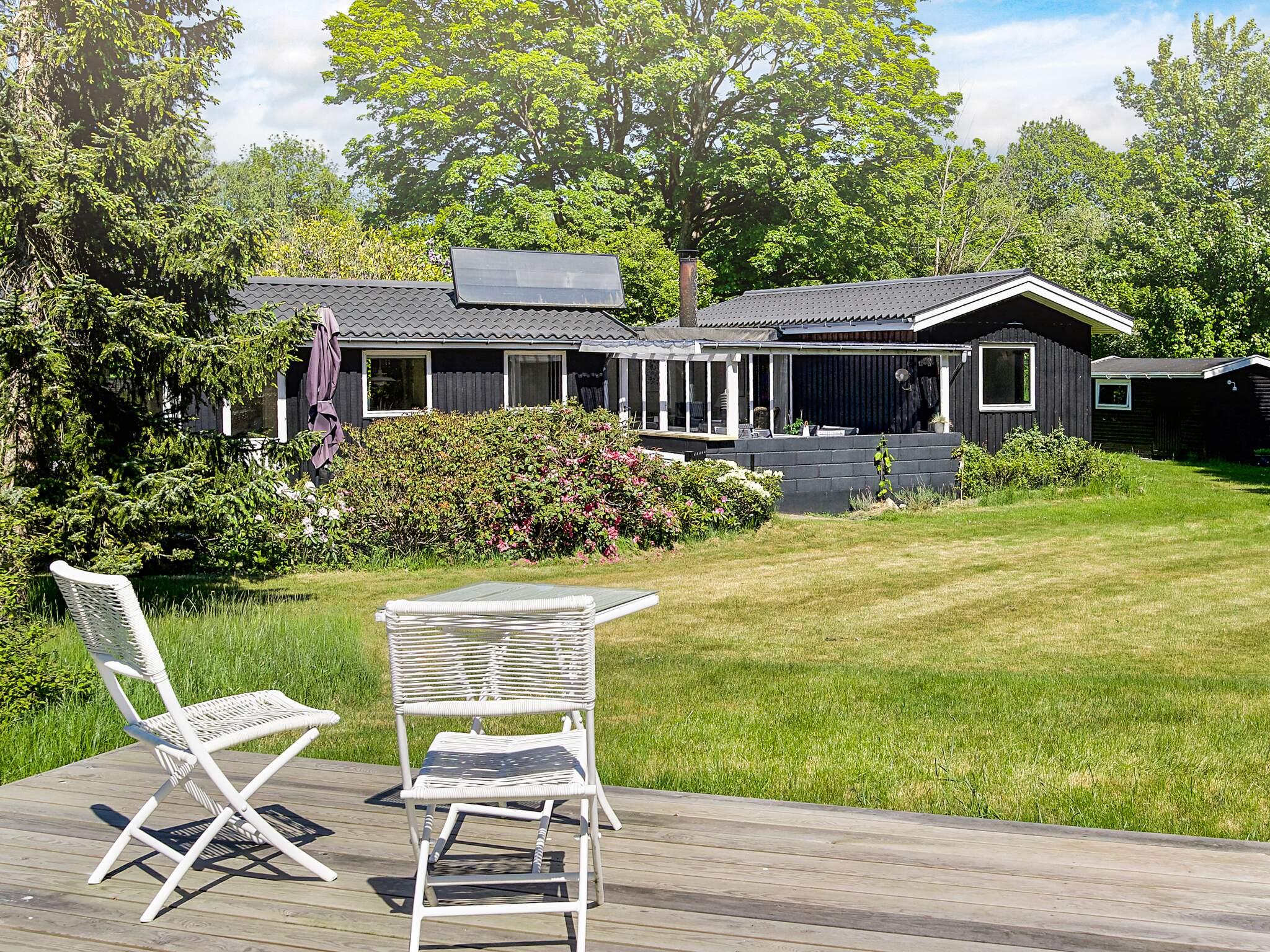 Dejligt beliggende sommerhus tæt på skov og strand ved Asnæs. I den skønneste, velanlagte have ligger dette hus som bl.a. indeholder en stor, hyggeligt møbleret mellemgang med brændeovn og stor, lys stue med skrålofter. Åbent køkken/spiseafdeling samt nydeligt badeværelse med vaskemaskine. Der er tre værelser heraf to med dobbeltsenge og værelse med to senge. I umiddelbar nærhed findes der et dejligt anneks med dobbeltseng, lys og varme. Stor, solrig terrasse med udsigt ud over den velholdte store have. Det er her man tænder grillen, åbner vinen og nyder børnene lege i haven, hvor det bl.a. findes en trampolin og hvor der er masser af muligheder for diverse boldspil. Der er kun ca. 800m ned til den dejlige børnevenlige Høve Strand. Udlejes ikke til ungdomsgrupper.Huset har 3 soveværelser. 2 med dobbeltseng og et med 2 senge. Anneks har 1 dobbeltseng