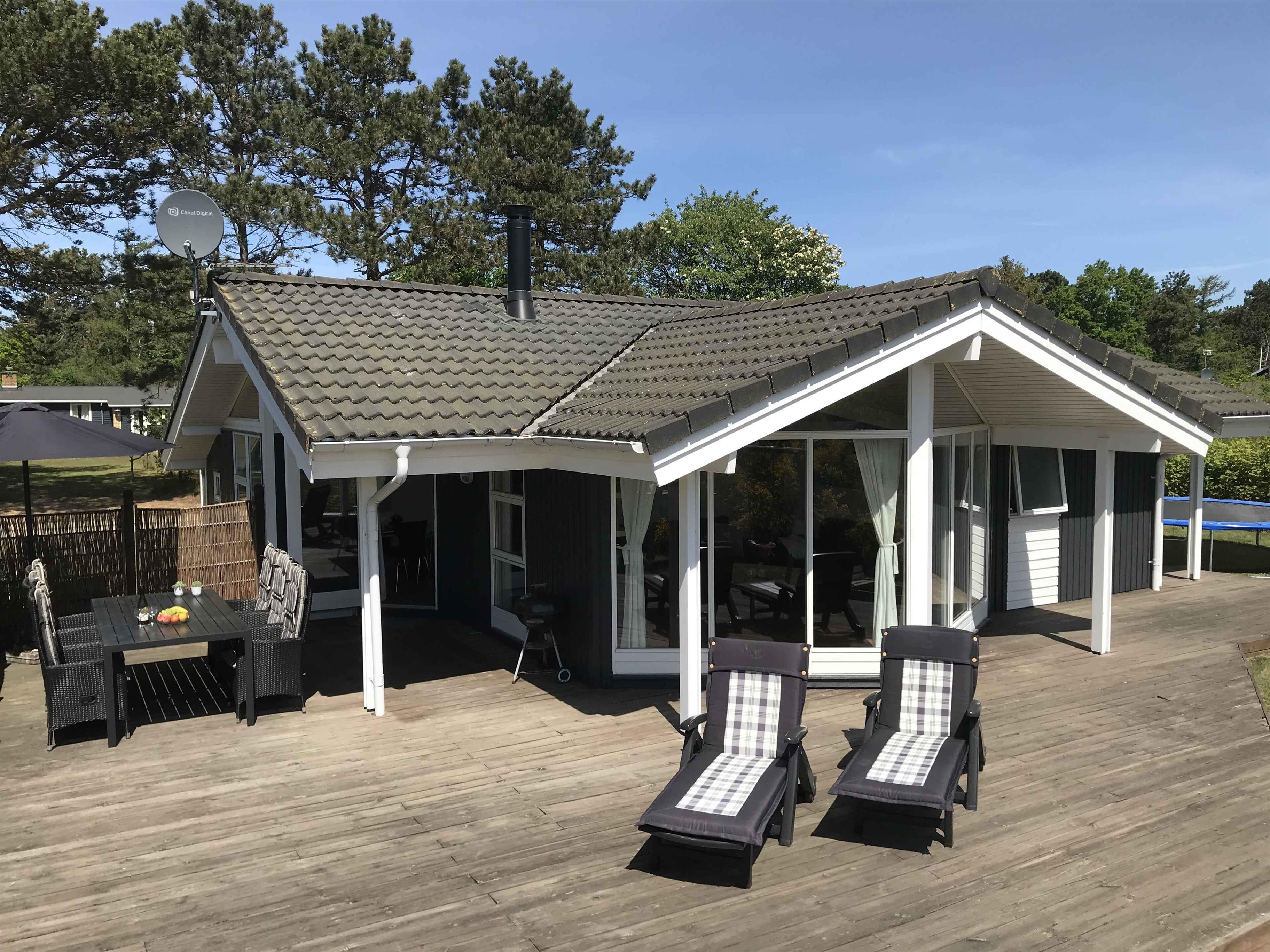Flot og rummeligt sommerhus på 80 m² med 2 værelser og plads til 6 personer. Tæt på tangfri sandstrand og med spabad, gode faciliteter og skøn beliggenhed nær natur, fiskeri, golf og ferieoplevelser.