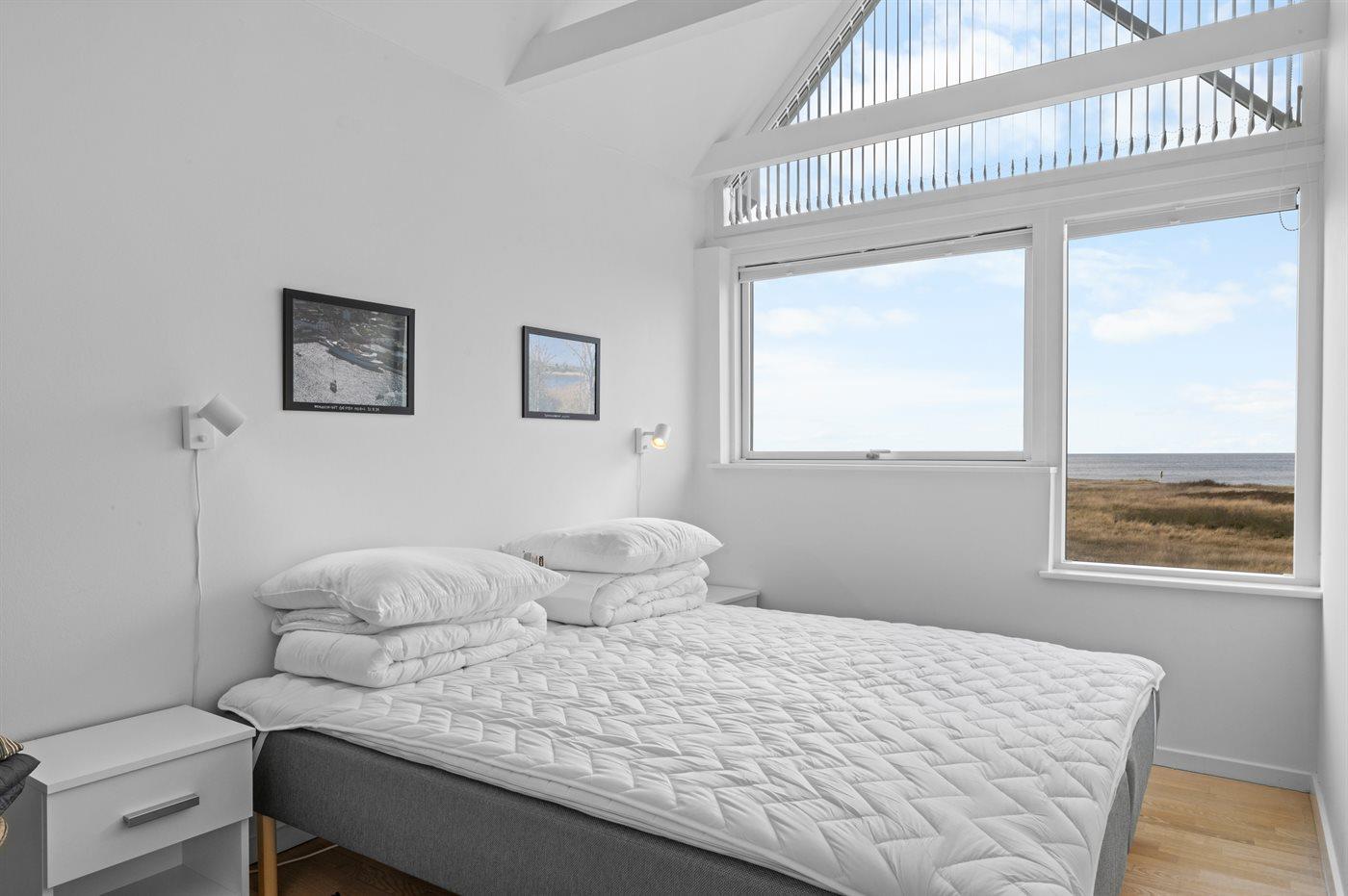 Der er i alt 3 soveværelser. Sovepladserne fordeler sig på: 2 sovepladser i dobbeltseng. 4 sovepladser i enkeltsenge. Derudover er der 1 stk. barneseng.
