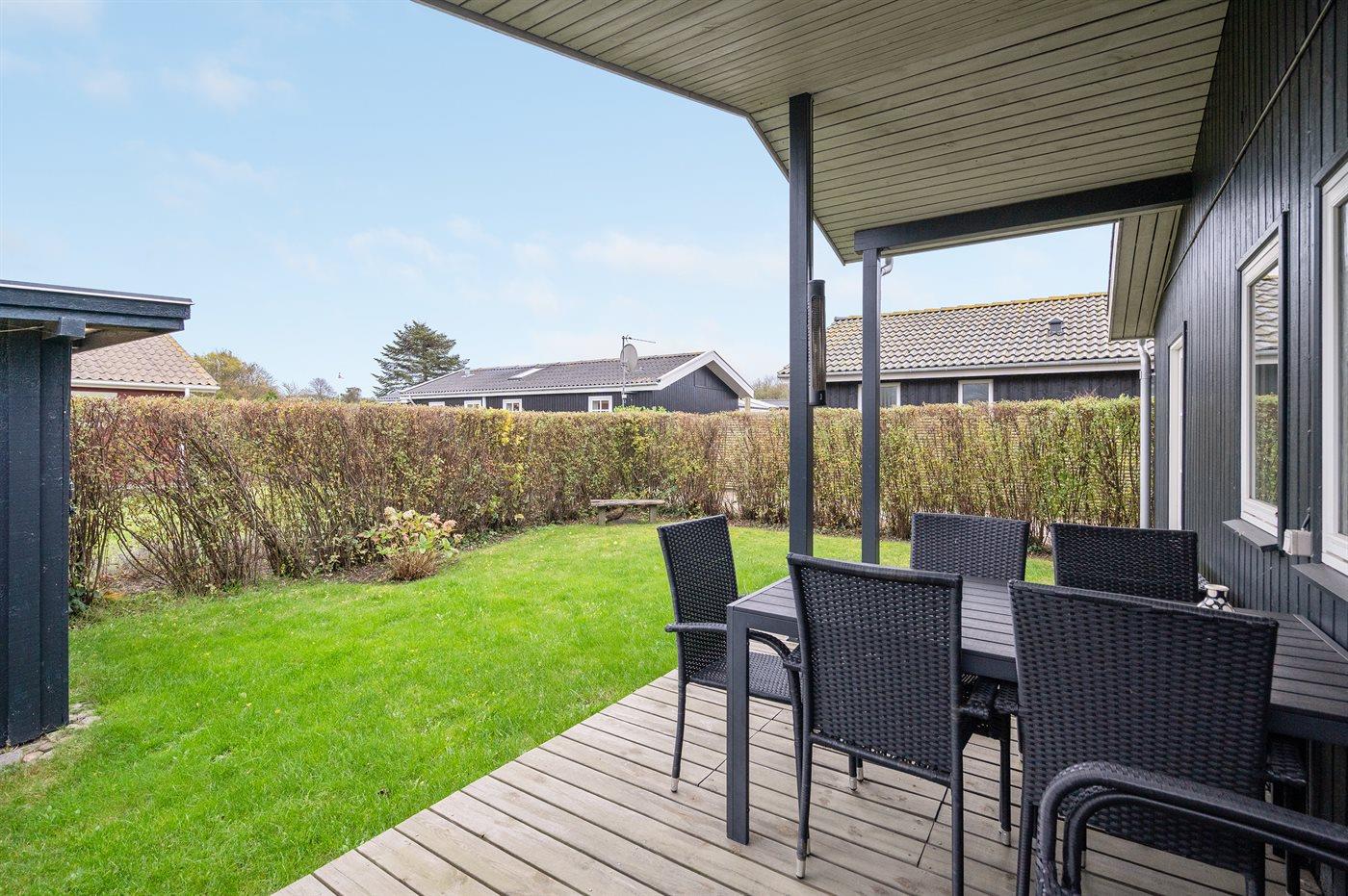 Ferieboligen er beliggende på en 334 m² stor havegrund. Der er 50 m til havet. Nærmeste forretning er beliggende i en afstand af 500 m. Der er en golfbane i en afstand af 9500 m. Til ferieboligen hører åbent terrasseareal. Desuden er der overdækket terrasse. Grill til rådighed. Parkering ved ferieboligen.