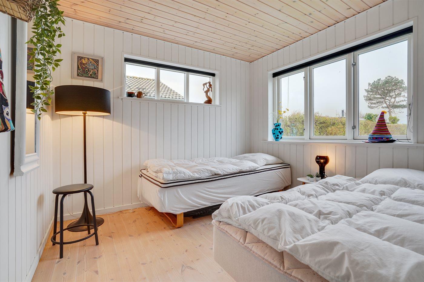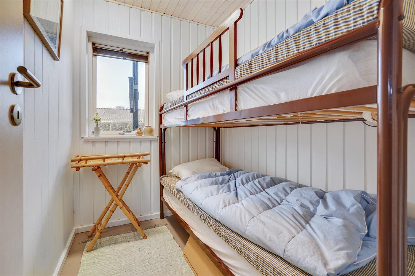 Der er i alt 3 soveværelser. Sovepladserne fordeler sig på: 2 sovepladser i dobbeltseng. 2 sovepladser i enkeltsenge. 2 sovepladser i køjeseng.