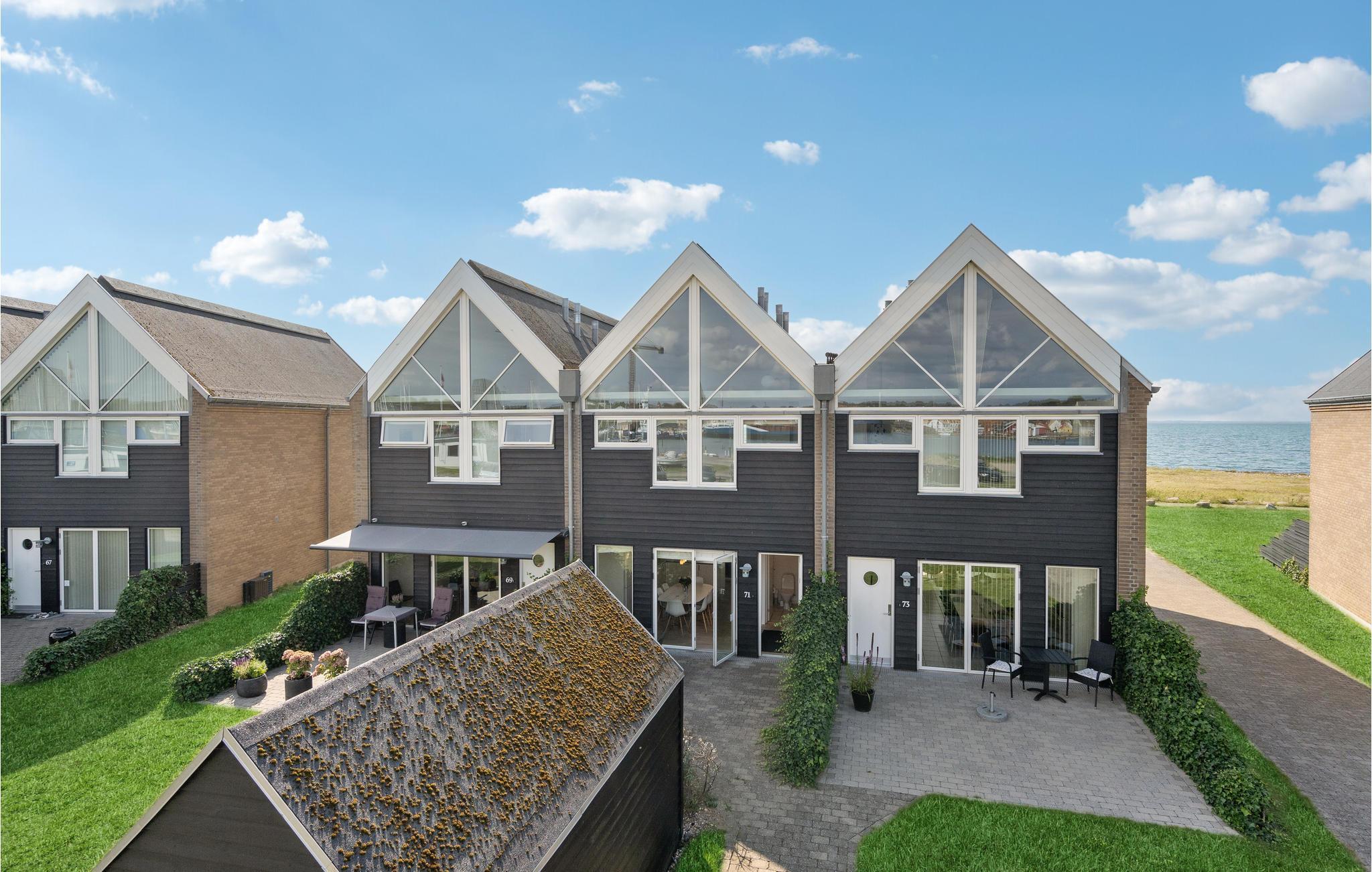 Moderne sommerhus ved Assens Strand med panoramaudsigt og spabad til afslapning.