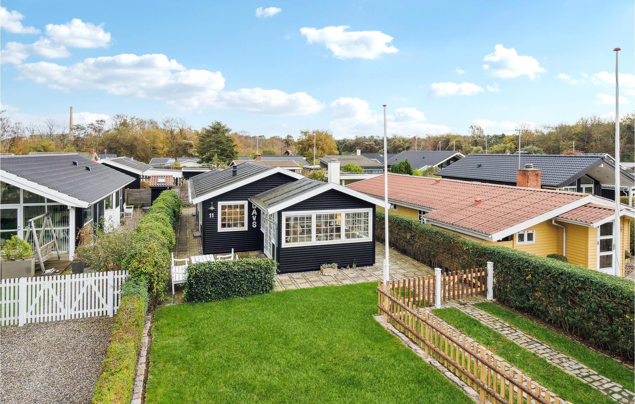 Charmerende og hyggeligt feriehus med sommerstemning nær stranden.