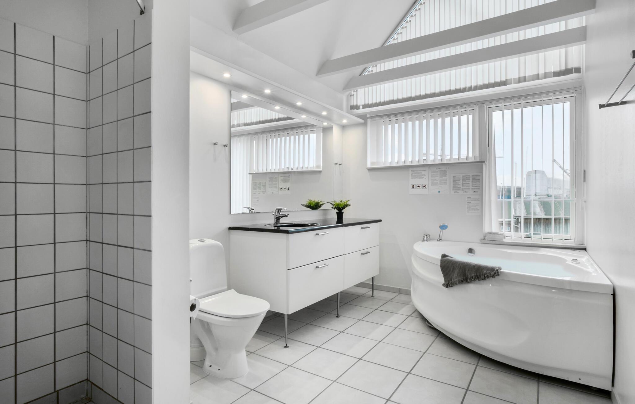 På det naturskønne Vestfyn finder man disse dejlige 2-etages feriehuse med beliggenhed direkte ned til vandet og kun 100 m fra den nærmeste sandstrand med badebro. Husene er opført i 2005 og har alle spabad samt en lys og moderne skandinavisk indretning, som fremhæves yderligere af smukke lysindfald fra de store vinduespartier. Fra flere af rummene kan man nyde den helt fantastiske udsigt over Lillebælt, Jylland og Baagø, hvis man da ikke lige er i færd med i fællesskab at tilberede et lækkert aftensmåltid i det veludstyrede køkken. Assens og omegn Feriehusene ligger nær den 800 år gamle, charmerende købstad og søfartsby Assens, som er en fredfyldt oase med brostensbelagte gader, idylliske bindingsværkshuse og købmandsgårde. Fra feriehusene, som ligger ved den hyggelige lystbådehavn, er der kun 500 m til Assens centrum, der byder på massevis af spændende gallerier, museer, samlinger og gode specialforretninger. Assens er omgivet af et smukt, bakket landskab med marker og skov og dejlige udsigter til det bølgekrusede Lillebælt, og området byder på mange enestående naturoplevelser, turistattraktioner og aktivitetsmuligheder. Ca. 15 km sydøst for Assens ligger halvøen Helnæs, der er kendt for sin unikke, uberørte natur, sit klare vand og skønne badestrande. 10 km nord for Assens finder man Sandager Næs, som er et ideelt udflugtsmål for dem, der gerne vil fiske, vandre, cykle eller bare nyde naturen i de fredelige omgivelser. Pak en lækker madkurv og sejl med færgen fra Assens til den lille, naturskønne ø Baagø, der er et oplagt udflugtsmål for en endagstur. Eller hvad med at leje en af de populære skinnecykler med plads til 3-4 personer og lade hele familien opleve naturen på en ny måde? Med en kystlinie på ca. 90 km er Vestfyn desuden et eldorado for vandhunde og andre med hang til badeliv, windsurfing, dykning og sejlads. Fyn er fin! I Fyns 'hovedstad' Odense kan man sagtens få en hel dag til at gå med at shoppe, gå på museer, besøge H. C. Andersens Hus og kigge på dyrene i Odense Zoo. Fyn er også kendt for sine mange eventyrlige slotte og herregårde og de imponerende haver og parker, ligesom det fynske landskab rummer et skatkammer af velbevarede levn fra fortiden.