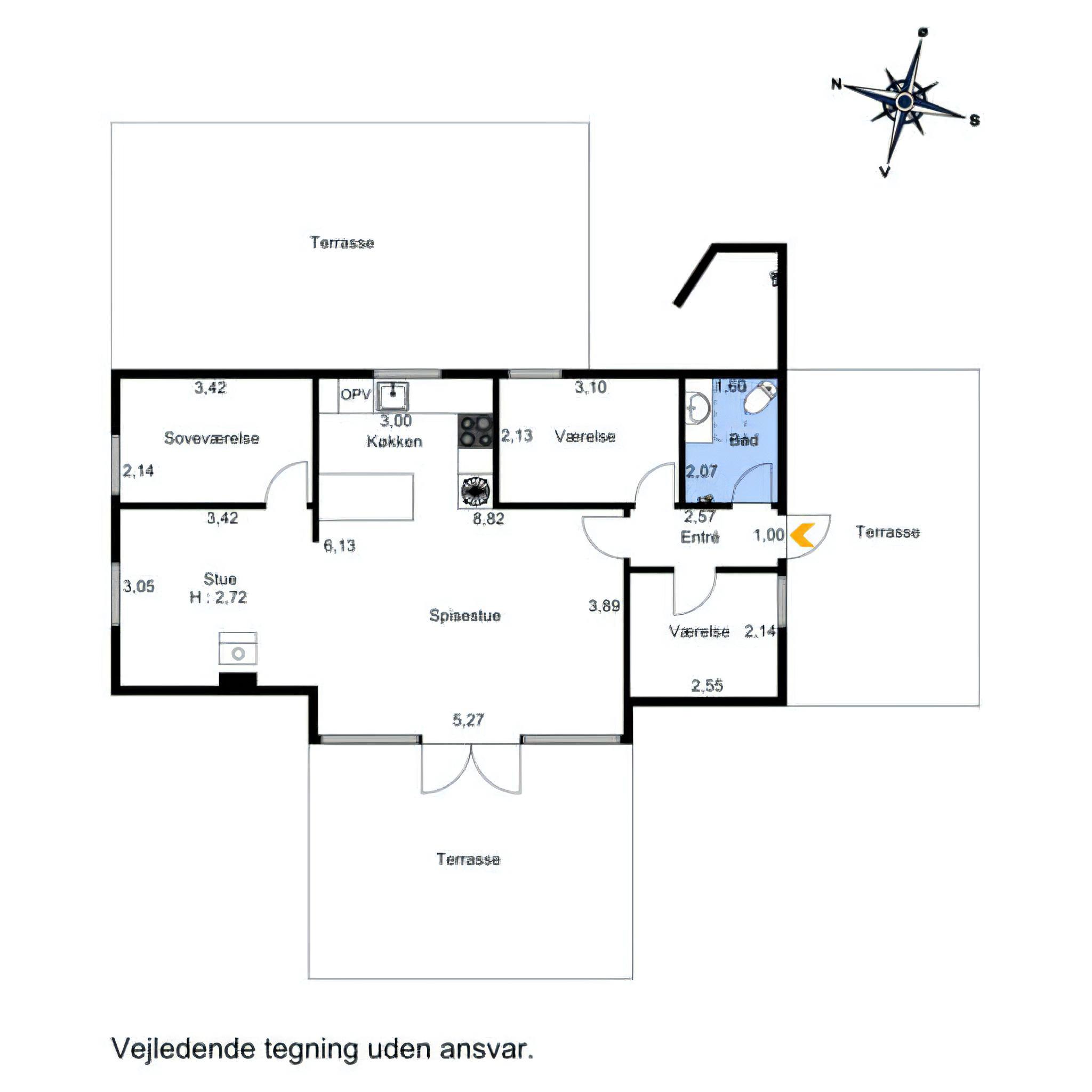 Kun få minutters gang fra vandet ligger dette velindrettede sommerhus. Med tre soveværelser og seks sovepladser er der plads til både familie og venner, uanset årstiden. Boligens 68 m², optimalt udnyttet med åbne opholdsrum og gode sovepladser. Nyt badeværelse. Varmepumpen sikrer et behageligt indeklima både sommer og vinter. Om vinteren kan der suppleres med varme fra brændeovnen. Brænde kan købes på stedet. Der er internet, som gør det muligt at streame eller arbejde online. Det store vildmarksbad kan rumme 6 personer. Her kan man sidde, med udsigt over havet, til Bogø imens man bliver masseret på ryggen. Huset har desuden udebruser med koldt og varmt vand, så du kan blive kølet ned i sommervarmen, eller få vasket sandet af efter en tur i havet. Den store grund giver gode muligheder for plads til leg og aktiviteter. Børn og hund kan boltre sig frit i den delvis indhegnede have, alt imens de voksne nyder freden på en af de 3 skønne terrasser. 2 af dem med kig til henholdsvis Assens og Bogø, samt det åbne landskab. Haven har desuden direkte adgang til en stor legeplads samt boldbane med mål. Den nærliggende strand er lavvandet og børnevenlig. Sandet er blødt, og vandet roligt, perfekt til badning, sandslotte og lange gåture langs kysten. Fra huset er der kig til havet, og kun en kort gåtur bringer dig helt tæt på. Ved siden af huset ligger en campingplads, hvor swimmingpoolen og minigolf kan benyttes imod et mindre beløb. Campingpladsen har også en cafe samt et lille supermarked hvorfra man kan købe det mest nødvendige (sæson åbent) Området byder på smukke naturoplevelser og gode muligheder for vandre- og cykelture. Her er stier gennem skove, langs marker og tæt på kysten. I de nærliggende havnebyer finder du hyggelige caféer, lokale restauranter og små butikker. Friske fisk og skaldyr kan købes direkte fra kutterne. Sommerhuset ligger i en rolig ferieområde. Her kan du kombinere afslapning med aktiviteter, uanset om du søger fred eller ferieliv. Med strand, grønne områder og gode faciliteter lige i nærheden er dette et ideelt sted til en ferie med både afslapning og oplevelser. Obs, udlejes ikke til erhversmæssigt brug.