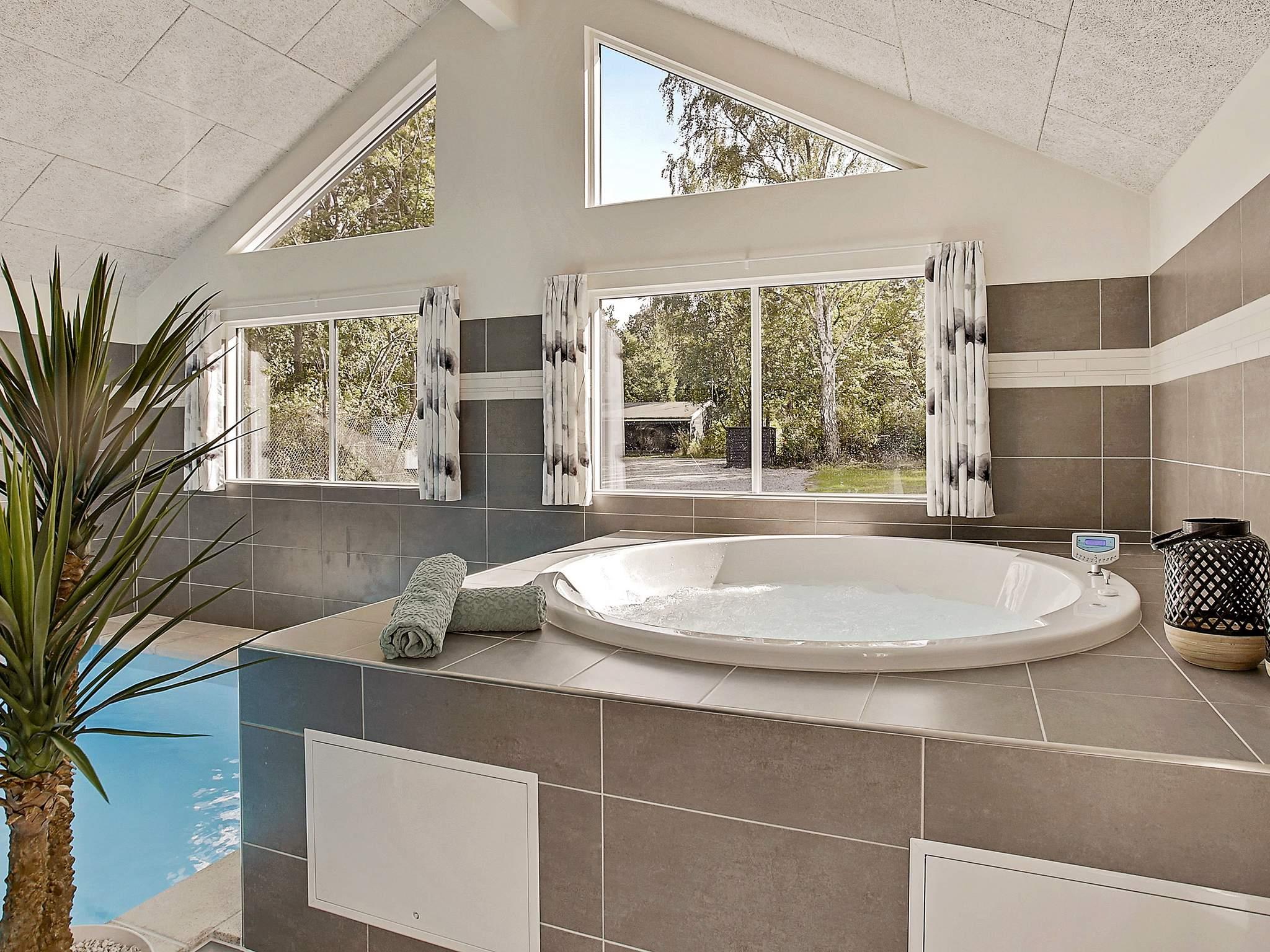 Husets poolafdeling indeholder både stor swimmingpool, svømmetræner, stort, indbygget spabad samt sauna med plads til 4-6 personer. Swimmingpoolen er på 20 m² og med rutschebane til børnene. Her vil store som små sikkert tilbringe en masse timer med leg og plasken.