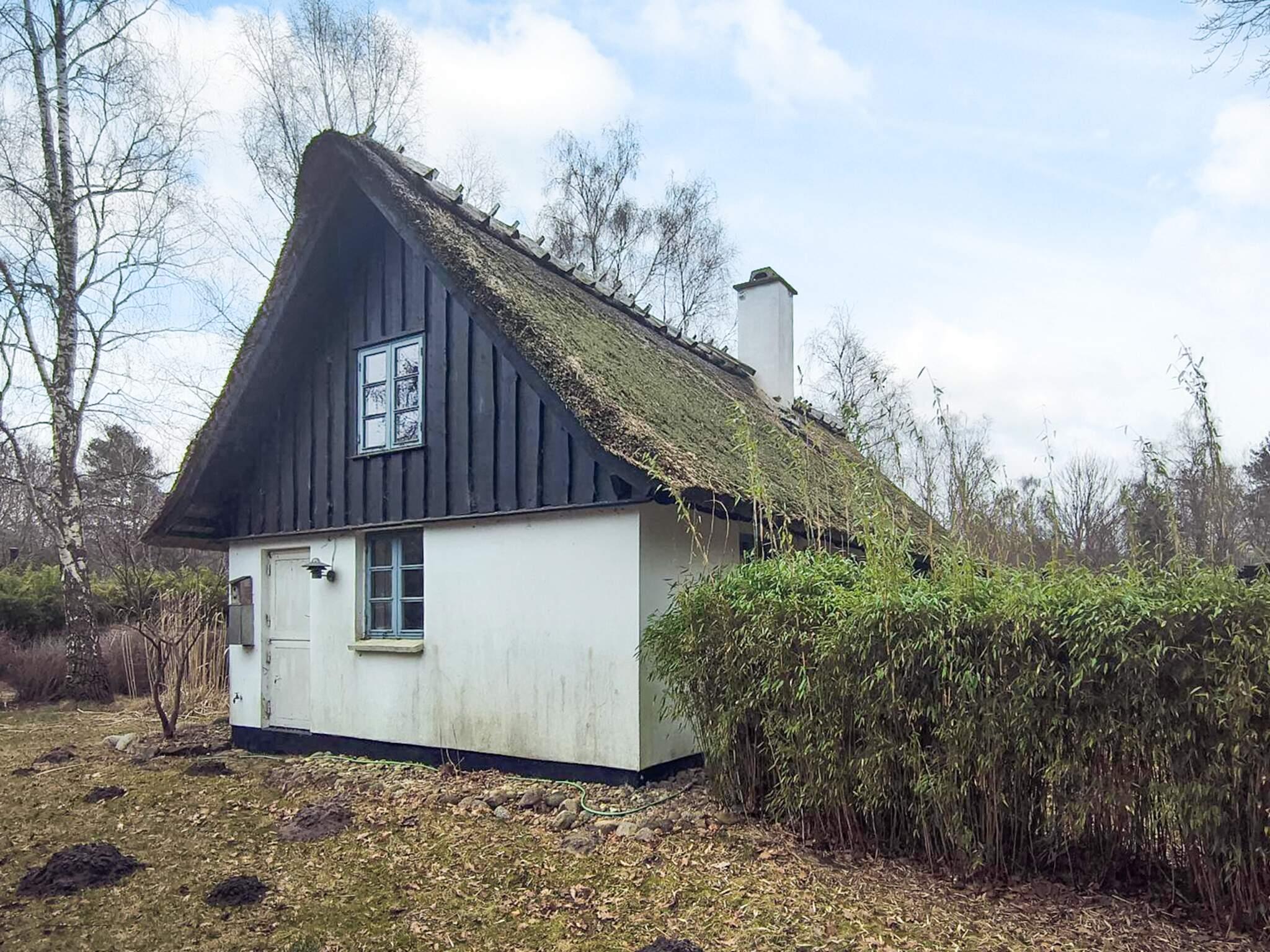 Charmerende sommerhus med stråtag, brændeovn og stor have tæt på naturen i Asserbo.