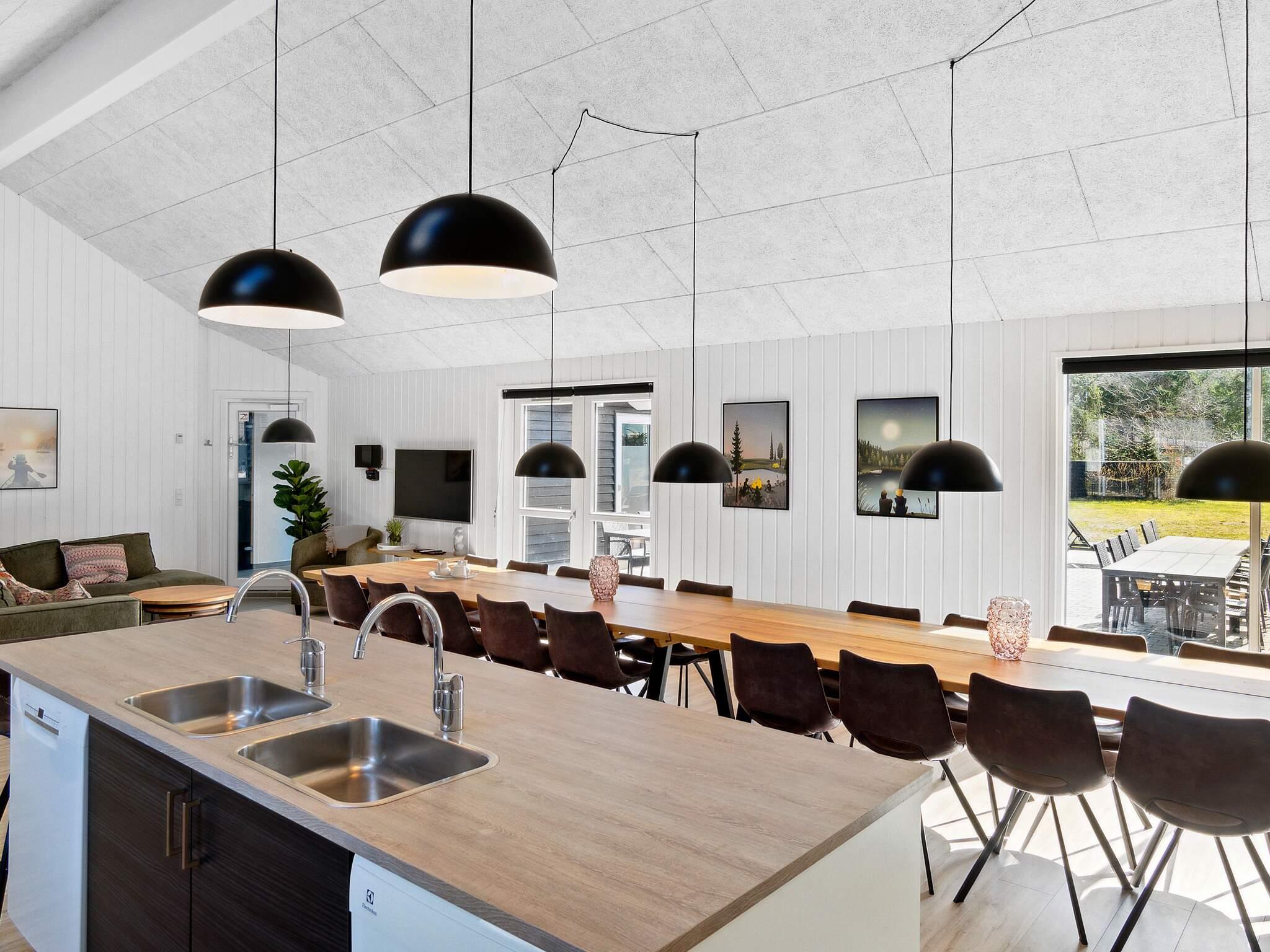 Huset er optimalt indrettet med moderne møblering, yderst rummeligt og veldimensioneret og bygget op omkring 3 separate soveafdelinger. Hver soveafdeling har 1 badeværelse og der er et ekstra badeværelse i forbindelse med poolafdelingen. Derudover stor og rummelige sovehems. Spise-/opholdsrum er smagfuldt indrettet med stereoanlæg med cd-afspiller, tv, dvd-afspiller, højstol, sofaafdeling og brændeovn.