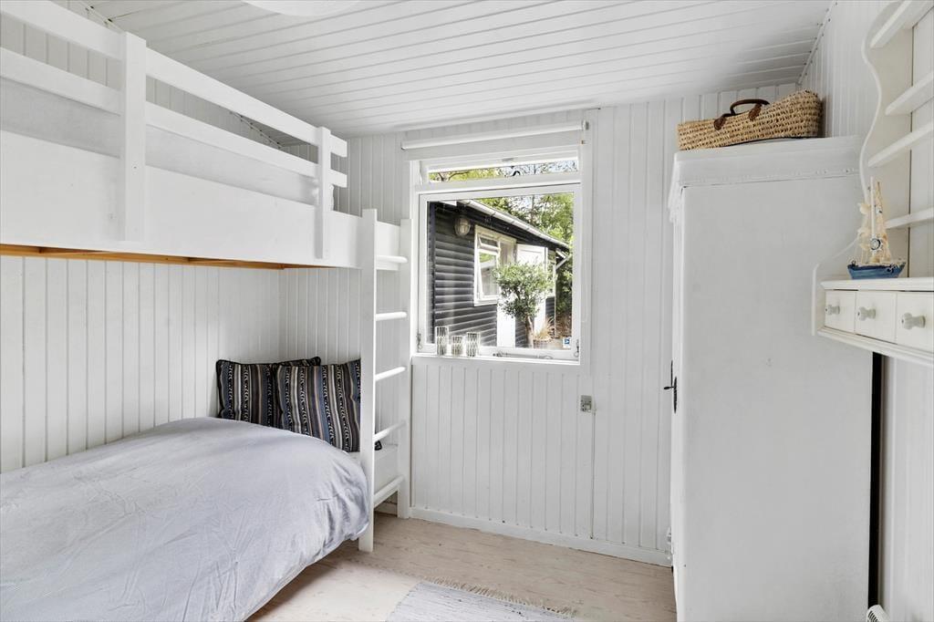 I sommerhuset mødes I af en lys og afslappet atmosfære, der gør det let at falde ned i ferietempo. Stuen og køkkenet ligger i åben forbindelse med hinanden, så samtalerne kan flyde frit, mens nogen dækker bord, og andre tilbereder maden. De store vinduespartier lukker lyset ind og skaber en let og luftig stemning, og gennem terrassedøren kan I træde direkte ud i solen. Soveværelserne giver alle mulighed for at trække sig tilbage og finde ro, og badeværelset er enkelt og praktisk, når I kommer hjem efter en dag ved stranden.