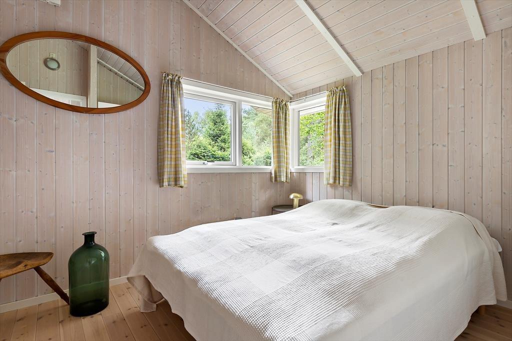 Indretningen er moderne og ukompliceret, præget af lys og luft. De to soveværelser byder på ro og komfort, og hele huset er skabt med øje for, at her skal være rart at være – uden støj og forstyrrelser, bare tid til nærvær og afslapning.