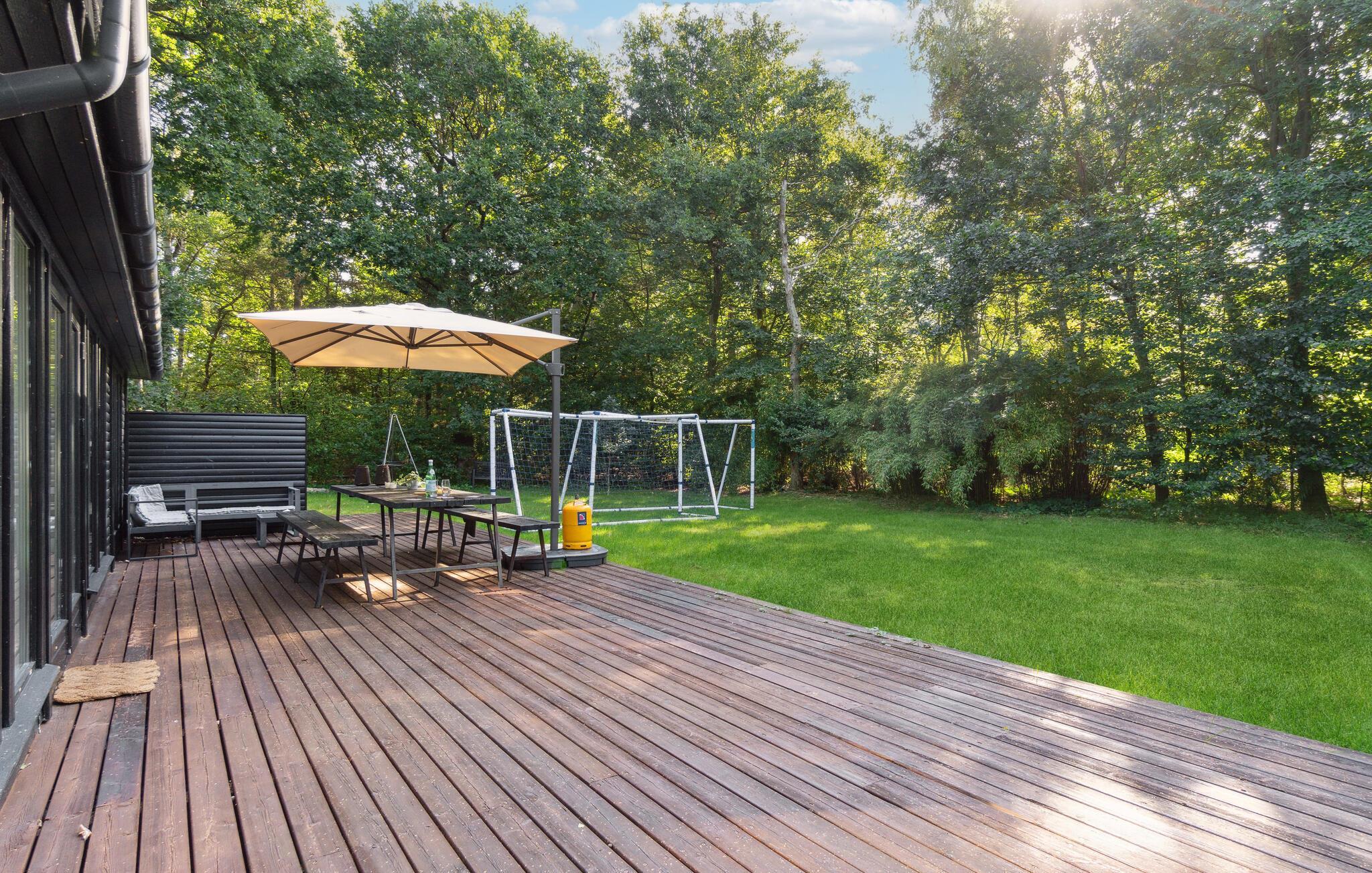 I haven kan I lade jeres børn hoppe på trampolinen, mens I dækker op til aftensmad på terrassen. Under maden kan I planlægge jeres kommende udflugter i området. Nyd den store terrasse, hvor I kan følge solen alt efter tidspunktet på dagen.