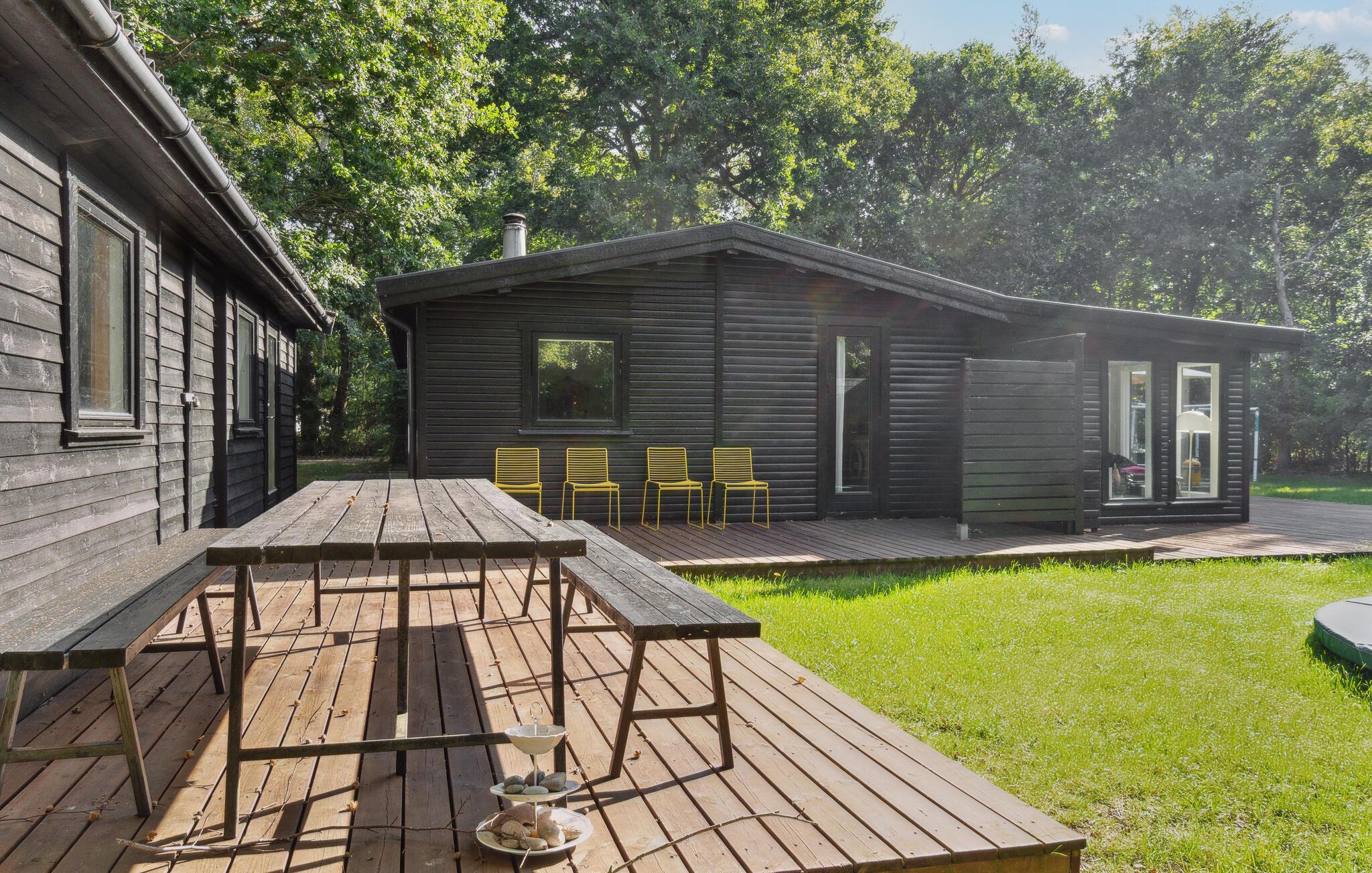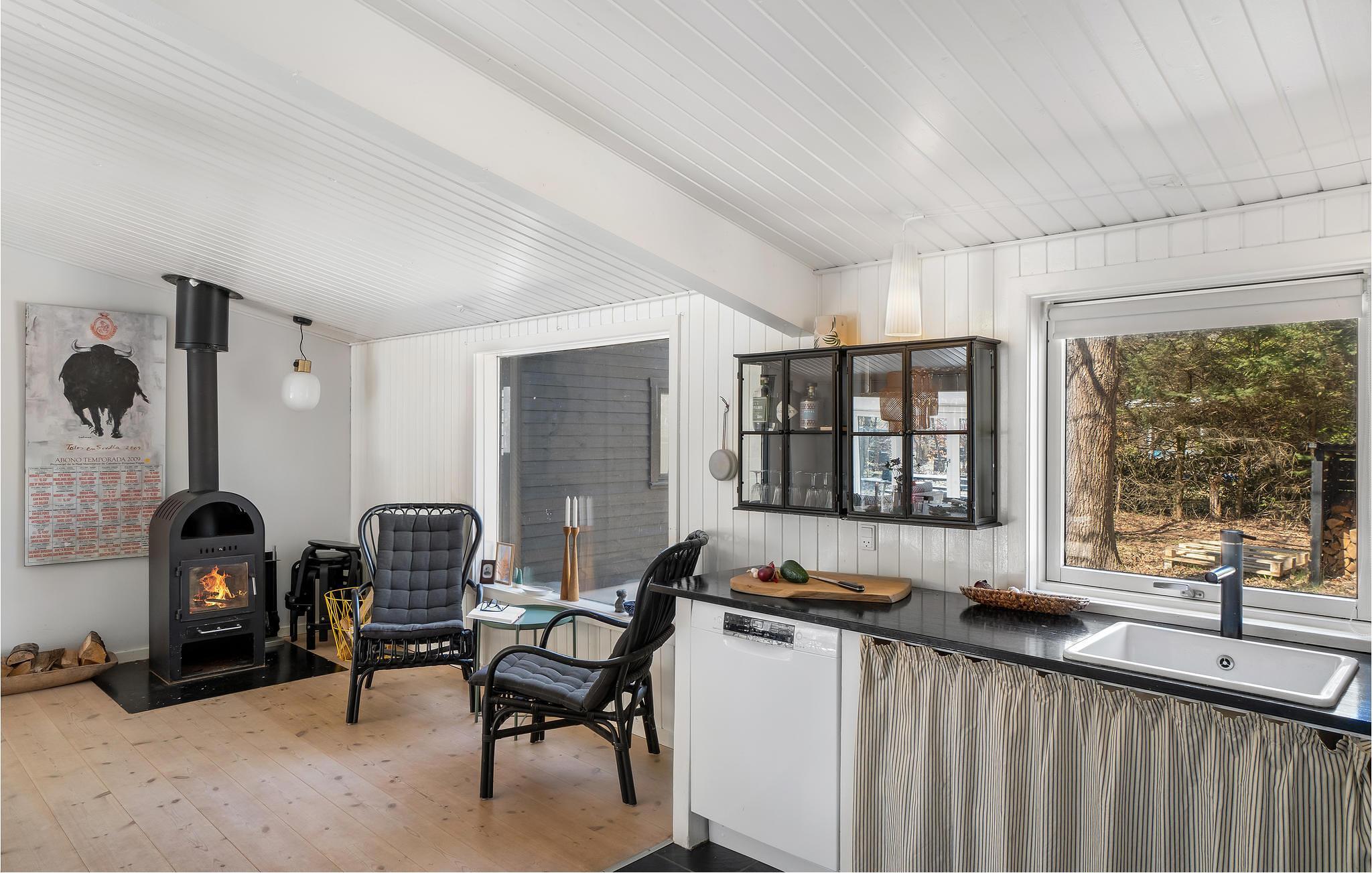 Forkæl jer og jeres store familie med en beroligende pause fra jeres hektiske hverdag i dette hyggelige sorte sommerhus med lyse rum. Her venter timevis af hygge! Saml hele familien til et brætspil ved spisebordet. Mens mor og far tryller yndlingsretterne frem i køkkenet, kan I hygge jer med klodsmajor eller puslespil. Husk puslespilsmåtten! På kølige aftener kan I nyde varmen fra brændeovnen og se en underholdende film.