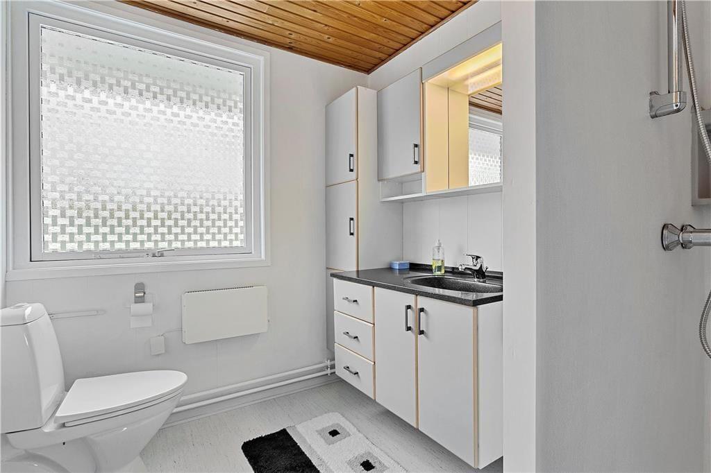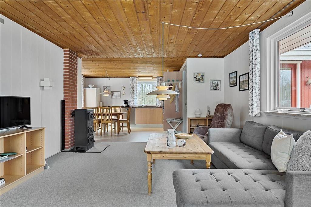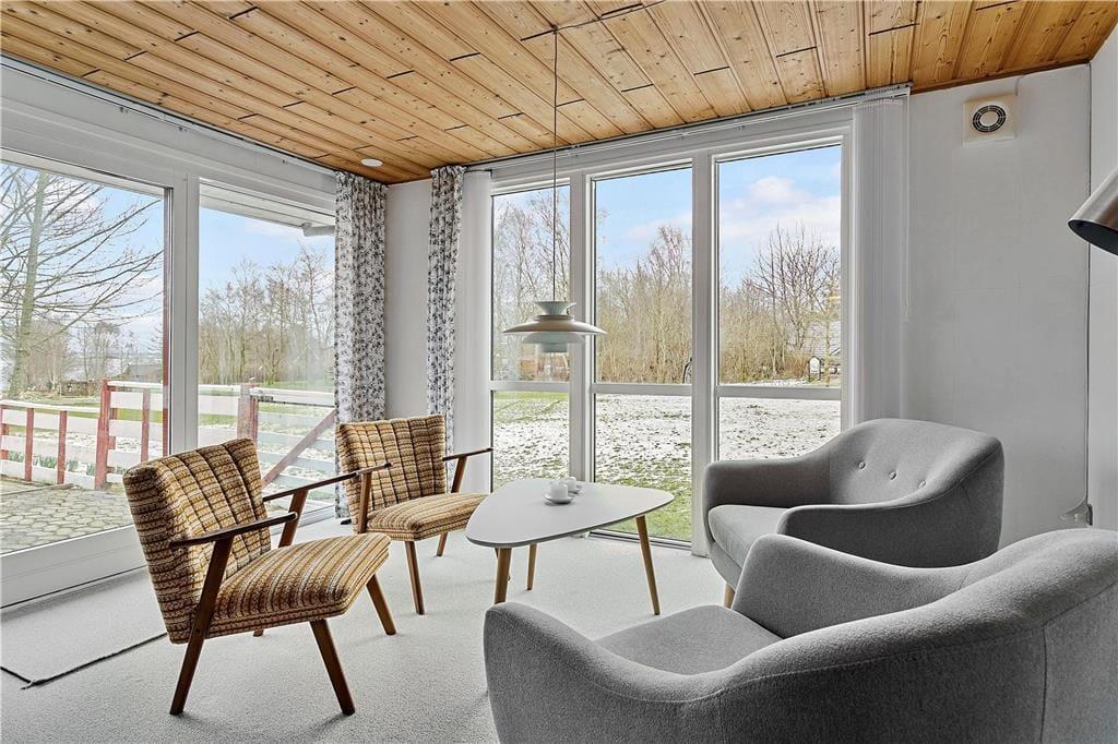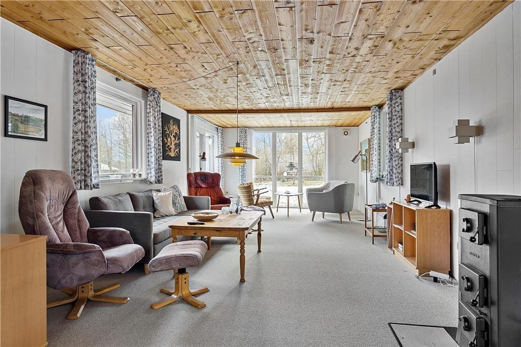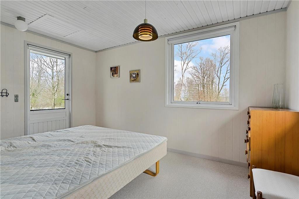 Sommerhuset inviterer masser af naturligt lys indenfor og giver samtidig fint kig til alt det grønne i haven. Fra stuen er der smuk udsigt over fjorden, så I kan nyde nærheden til naturen. Brændeovnen er ikke tilkoblet og er kun til pynt. Køkkenet er fra 2018, så I har gode arbejdsforhold, når der skal laves mad. Soveværelser er der to af, hvoraf det største har udsigt til vandet og direkte udgang til haven – og som supplement til værelsernes sovepladser er der en sovesofa i stuen. Et flot badeværelse med bruseniche hører endelig også med til planløsningen.