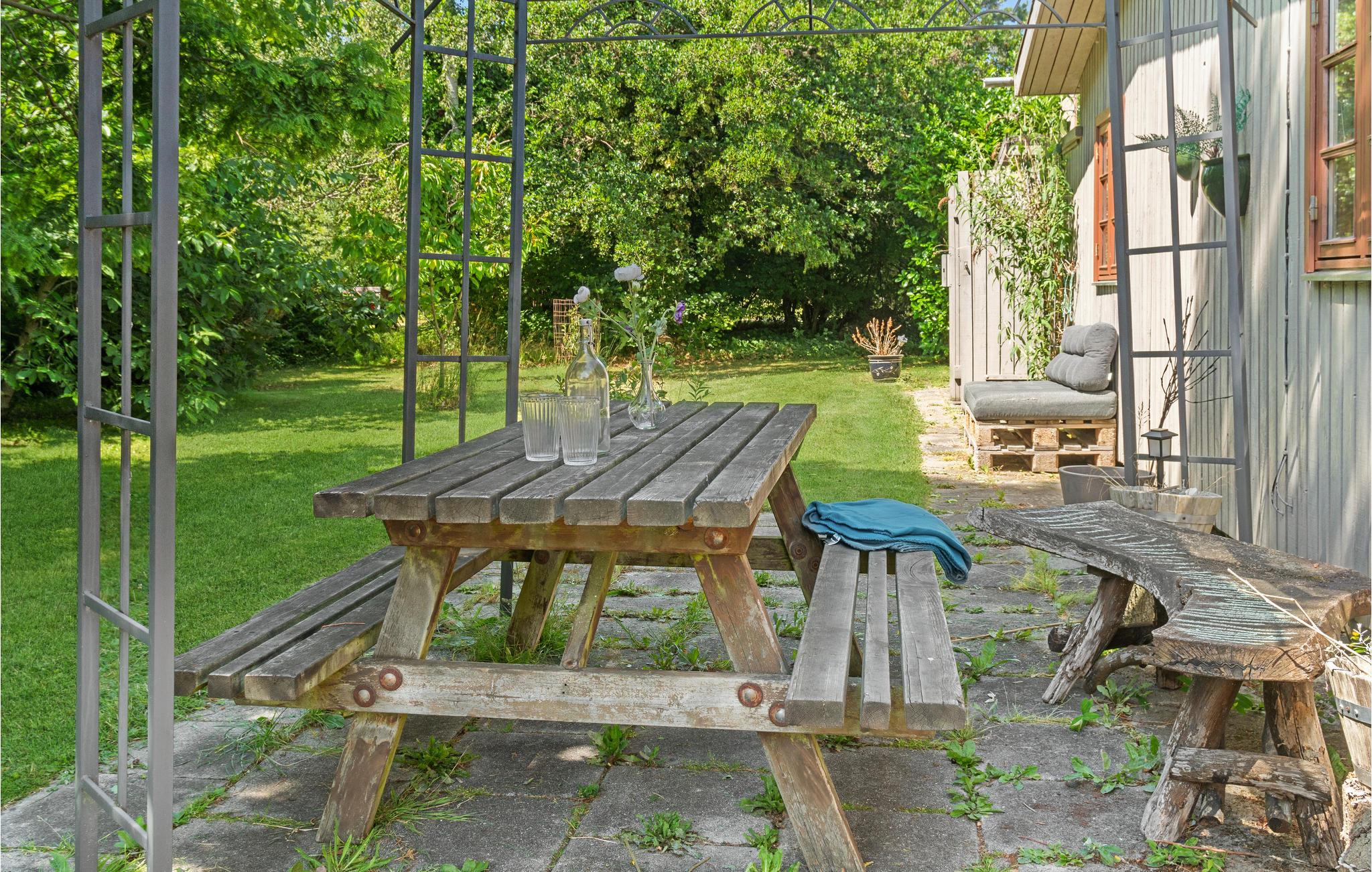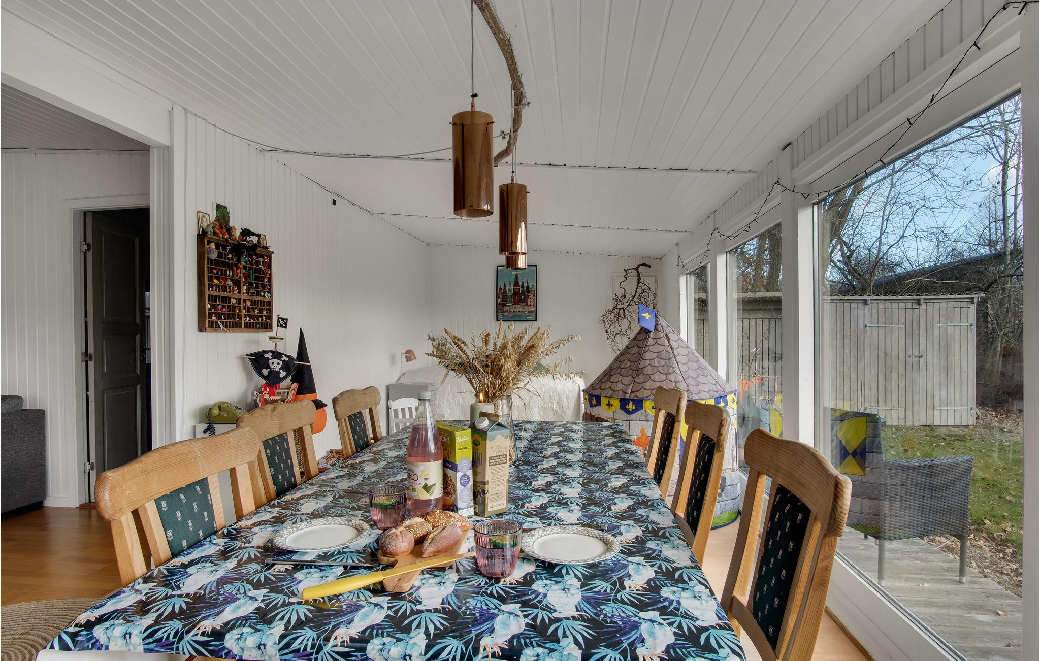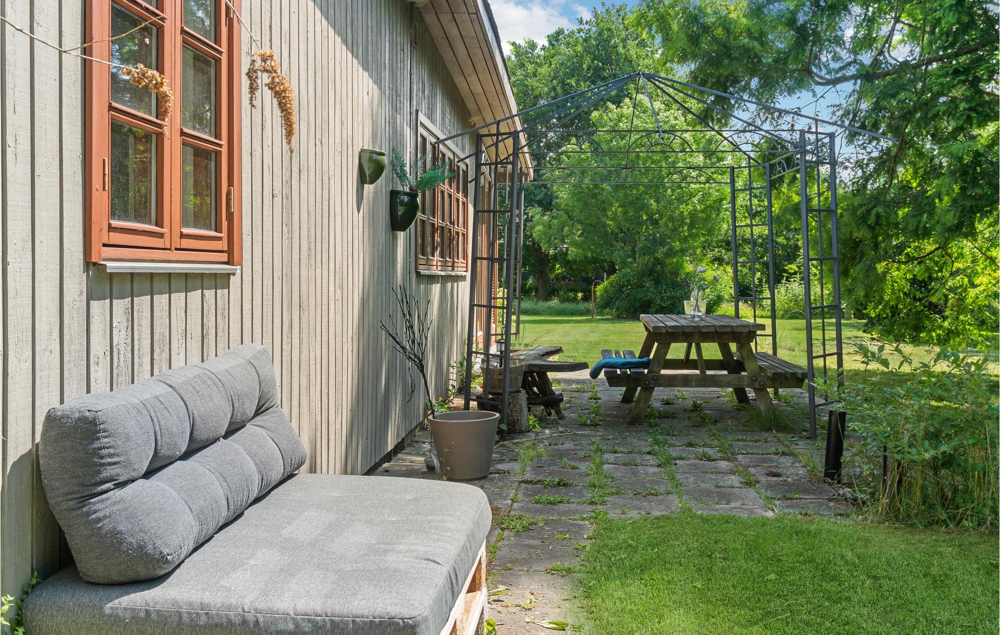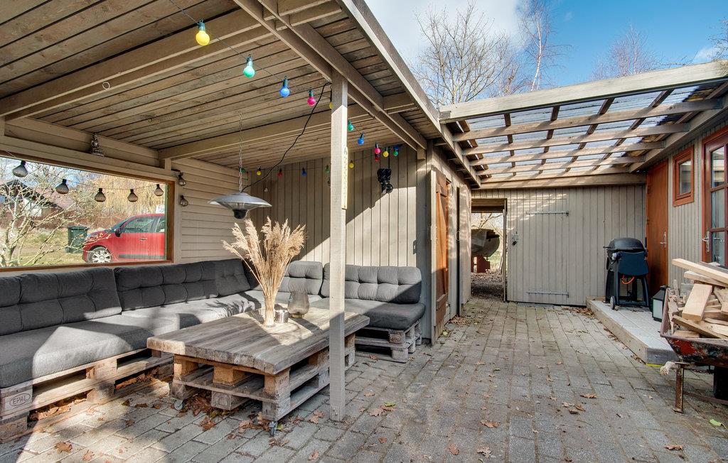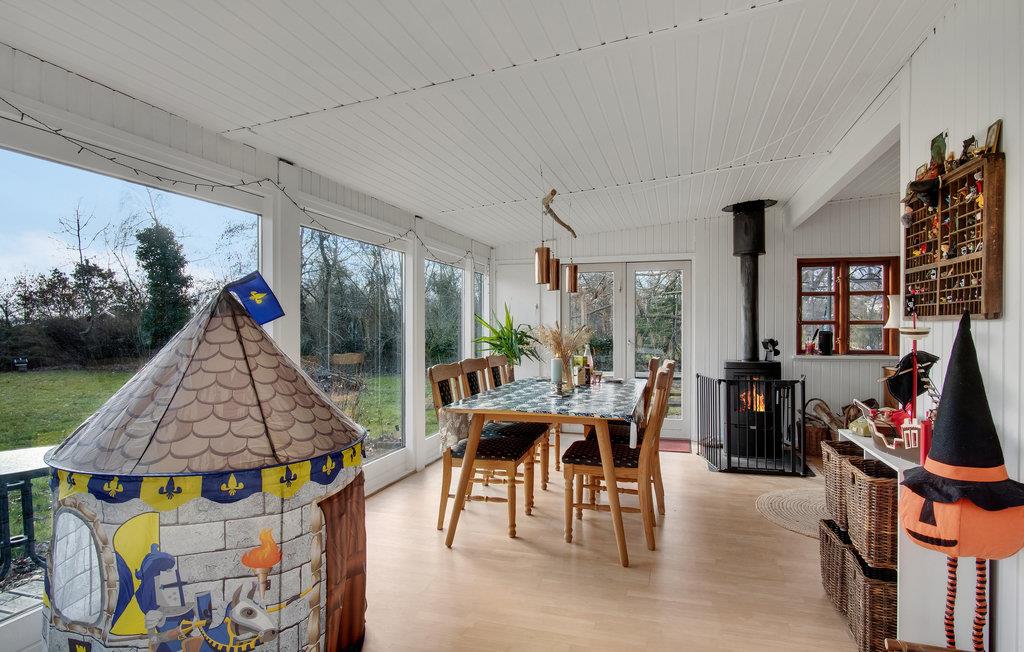 I kan slappe af med hele familien i husets lyse rum. Den hyggelige indretning sikrer en behagelig atmosfære, og vinduespartierne slipper masser af dagslys ind i huset. Nyd måltiderne sammen ved det lange spisebord med en vidunderlig udsigt over haven. Senere kan I føle jer godt tilpas i sofaen, efter en vidunderlig dag på stranden eller på udflugter, kan I tænde op i brændeovnen om aftenen og arrangere en selskabelig film- eller spilleaften. Feriehusets udendørsområde indbyder til mange glade timer i det fri. Nyd solen på terrassen og slap af, mens jeres børn render rundt på ejendommen eller hopper på trampolinen. Saml hele familien om et bål om aftenen.