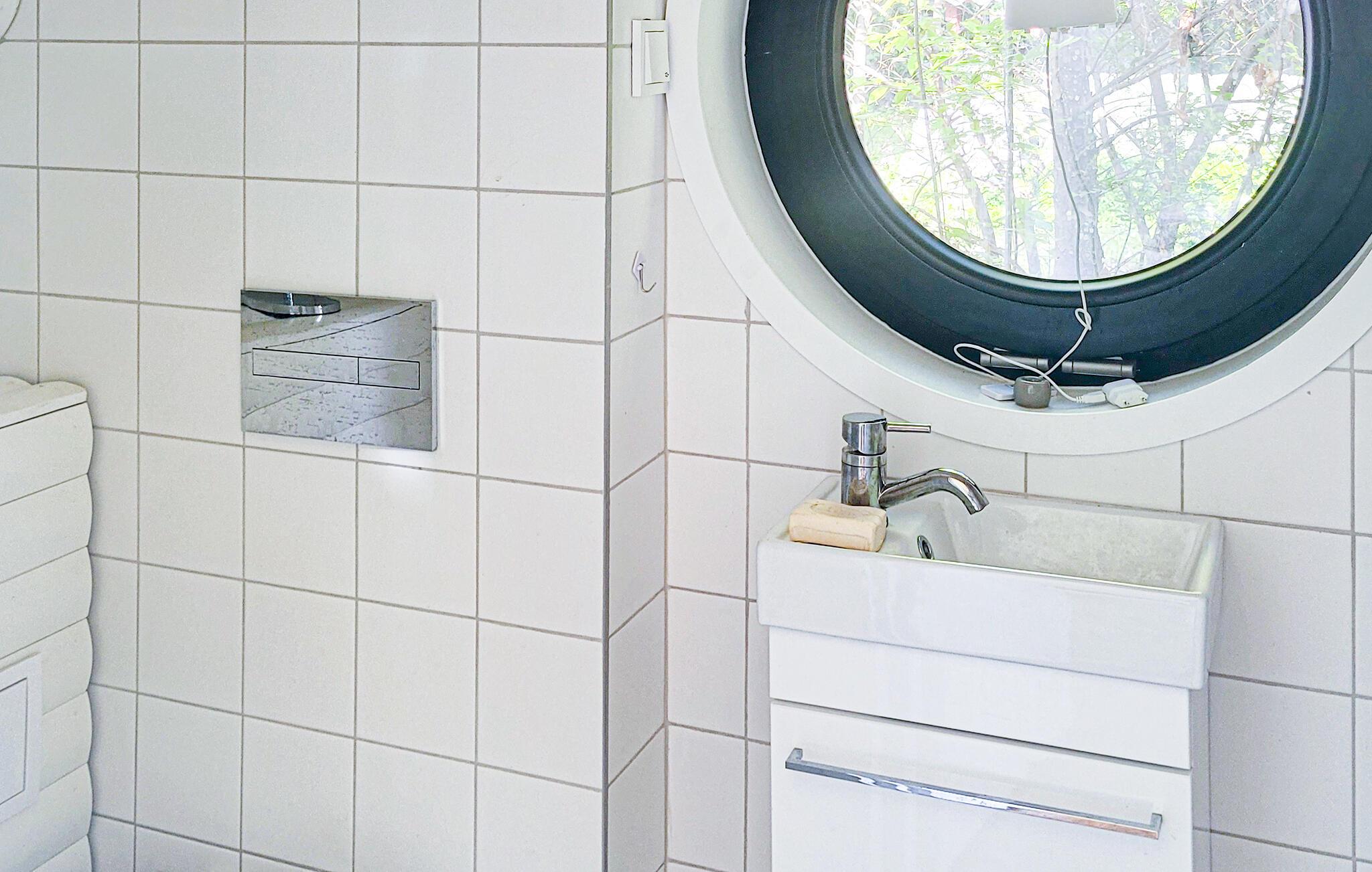 Velkommen til et hyggeligt og personligt sommerhus, hvor alt emmer af ro og feriestemning. Her indbyder boligen med det samme til at sætte sig med en god kop kaffe og nyde den skønne udsigt til haven. De store vinduer bader opholdsrummet i lys, og huset har en åben udformning, hvor I nemt kan hygge jer med hver jeres projekter, lige fra læsning til madlavning eller brætspil. Dæk op til dagens måltider ved det rustikke træbord og snak om, hvad I vil ud at opleve. Om aftenen kan I læne jer tilbage med en bog i stolen ved vinduet og lade dagen passere revy.