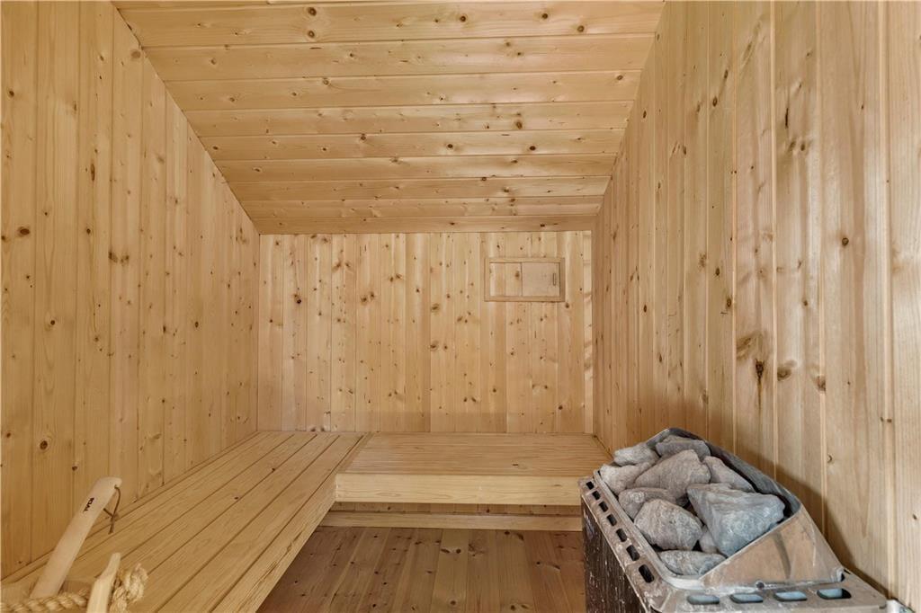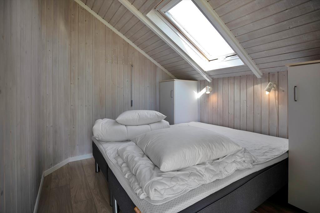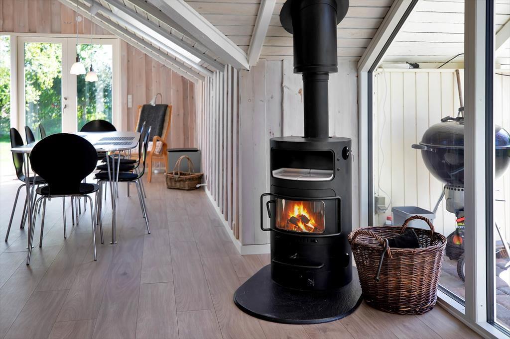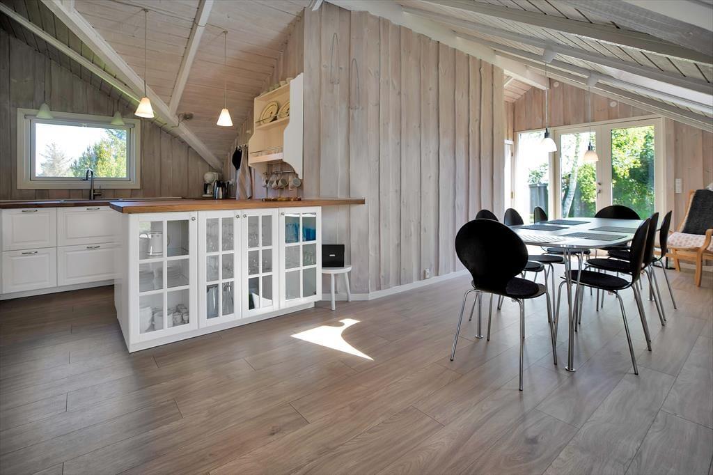 Den store hjørnesofa er som skabt til hygge og samvær, og her i krogen lige ud til terrassen ved siden af brændeovnen, vil du kunne få mange timer til at gå med et slag yatzyspil og god stemning. Det åbne lyse køkken ligger helt centralt i huset, og herfra kan du også deltage i samtalen ved bordet eller sofaen, mens du forbereder en sund salat eller bager en kage. Har du lyst til at blive gennemvarm, ligger saunaen i den ene side af huset og badeværelset i den anden.