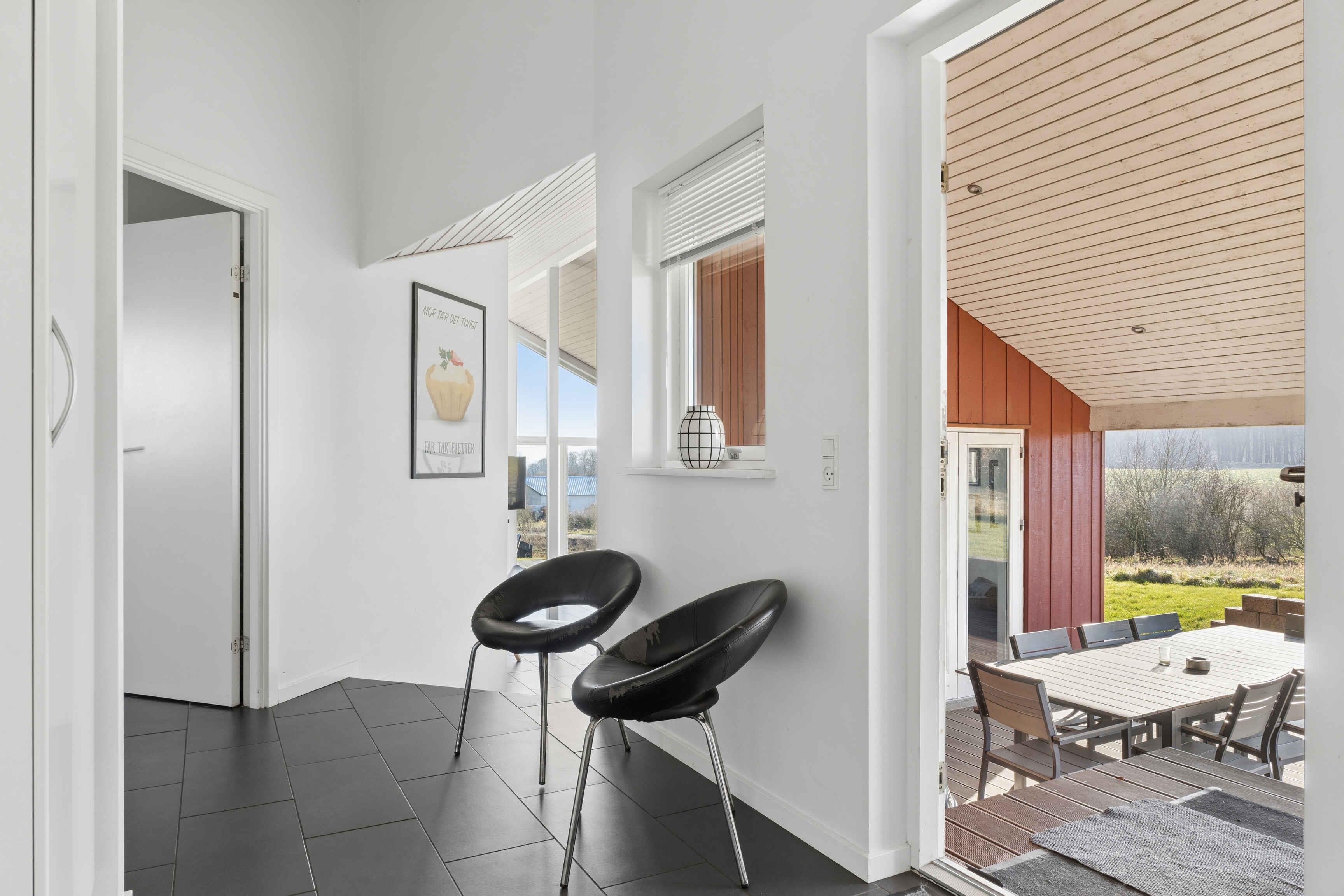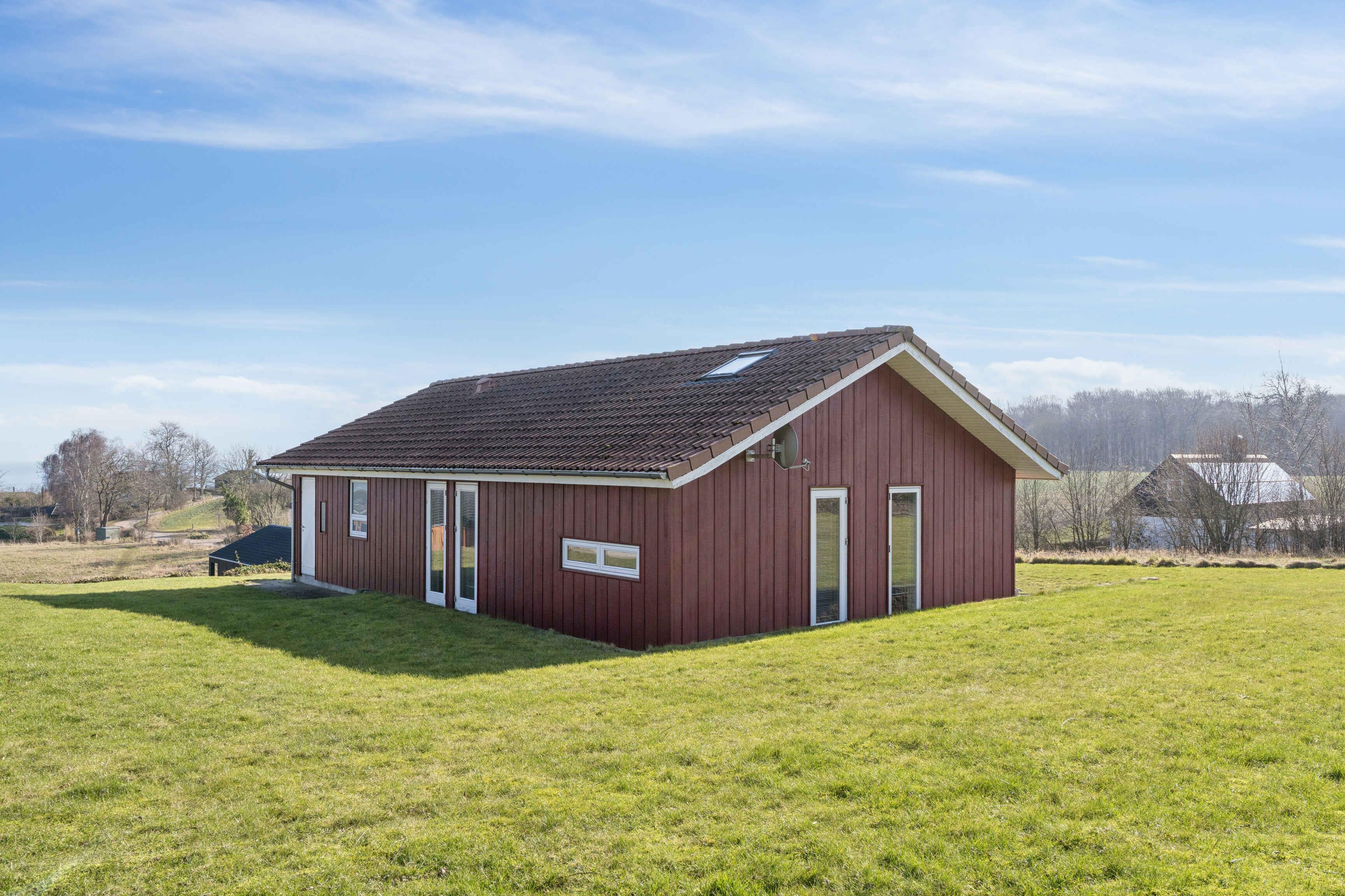 Et sommerhus med havudsigt fra såvel hus som grund - beliggende i et roligt ferieområde. Huset ligger ikke langt fra en strand med sten og ca. 1500 m fra en sandstrand. Sommerhuset egner sig til 10 personer. Ferieboligen er på 122 m² og er bygget i 2010. Det er tilladt at medbringe 2 husdyr. Der er solvarme. Hele ferieboligen har gulvvarme. Ferieboligen har vaskemaskine. Tørretumbler. Frysekapacitet på 50 liter. Der er desuden brændeovn. Til de små er der 1 stk. barnestol. Ferieboligen er beliggende på en 990 m² stor naturgrund. Der er 600 m til havet. Nærmeste forretning er beliggende i en afstand af 4000 m. Der er en golfbane i en afstand af 6000 m. Til ferieboligen hører åbent terrasseareal. Desuden er der overdækket terrasse. Grill til rådighed. Parkering ved ferieboligen. Der er i alt 4 soveværelser. Sovepladserne fordeler sig på: 8 sovepladser i dobbeltsenge. 2 sovepladser på madrasser. 2 af disse sovepladser befinder sig på husets hems. Derudover er der 1 stk. barneseng. Køkkenet er udstyret med 1 køleskab. Der er 4 keramiske kogeplader, varmluftovn, mikrobølgeovn samt opvaskemaskine. Der er 2 badeværelser med bruseniche og 2 toiletter. Der er gulvvarme på 2 badeværelser. Der er mulighed for afslapning i indendørs spa til 2 personer. I ferieboligen er der 1 TV. Der er 1-3 danske kanaler. 1-3 tyske kanaler. Der er trådløst internet til rådighed.