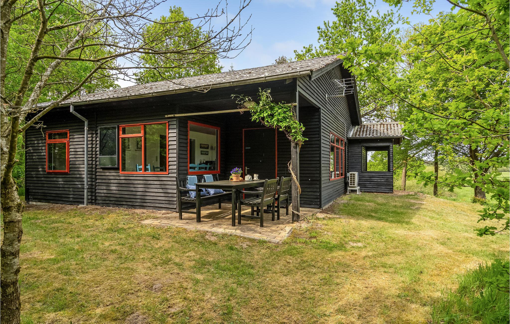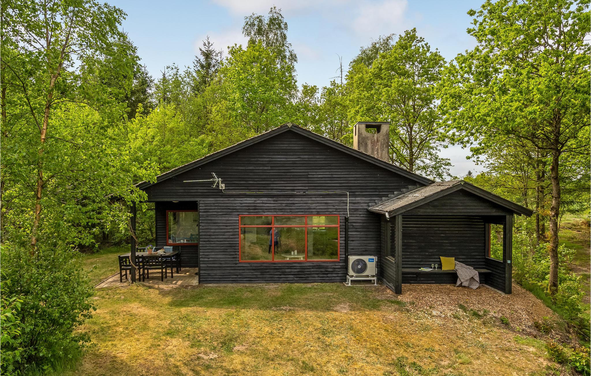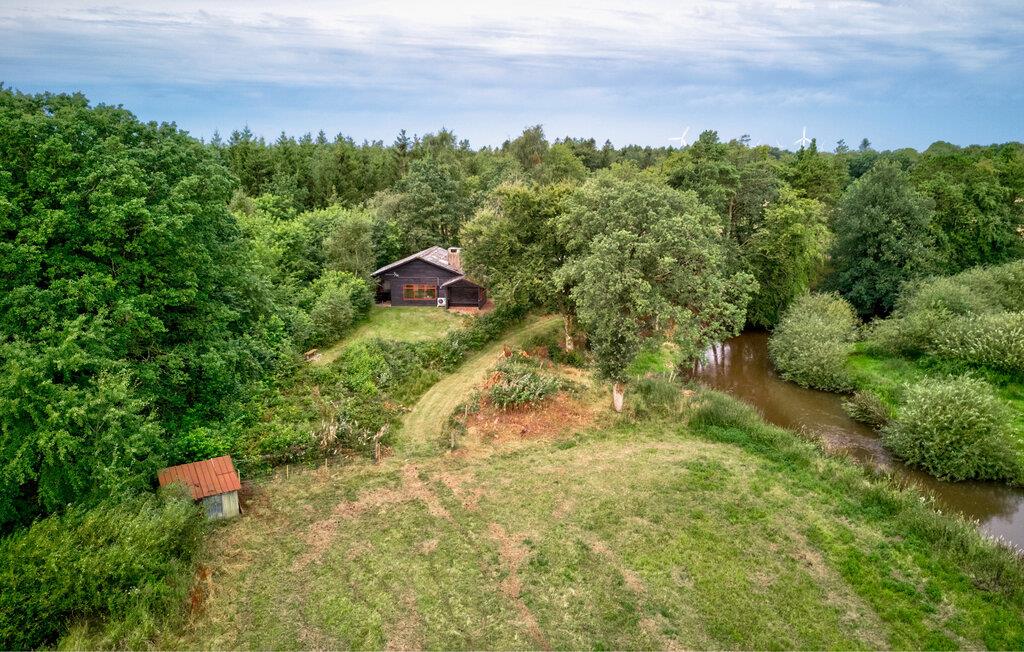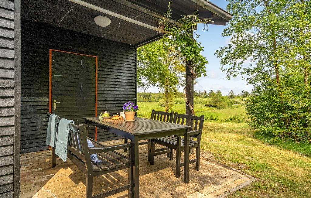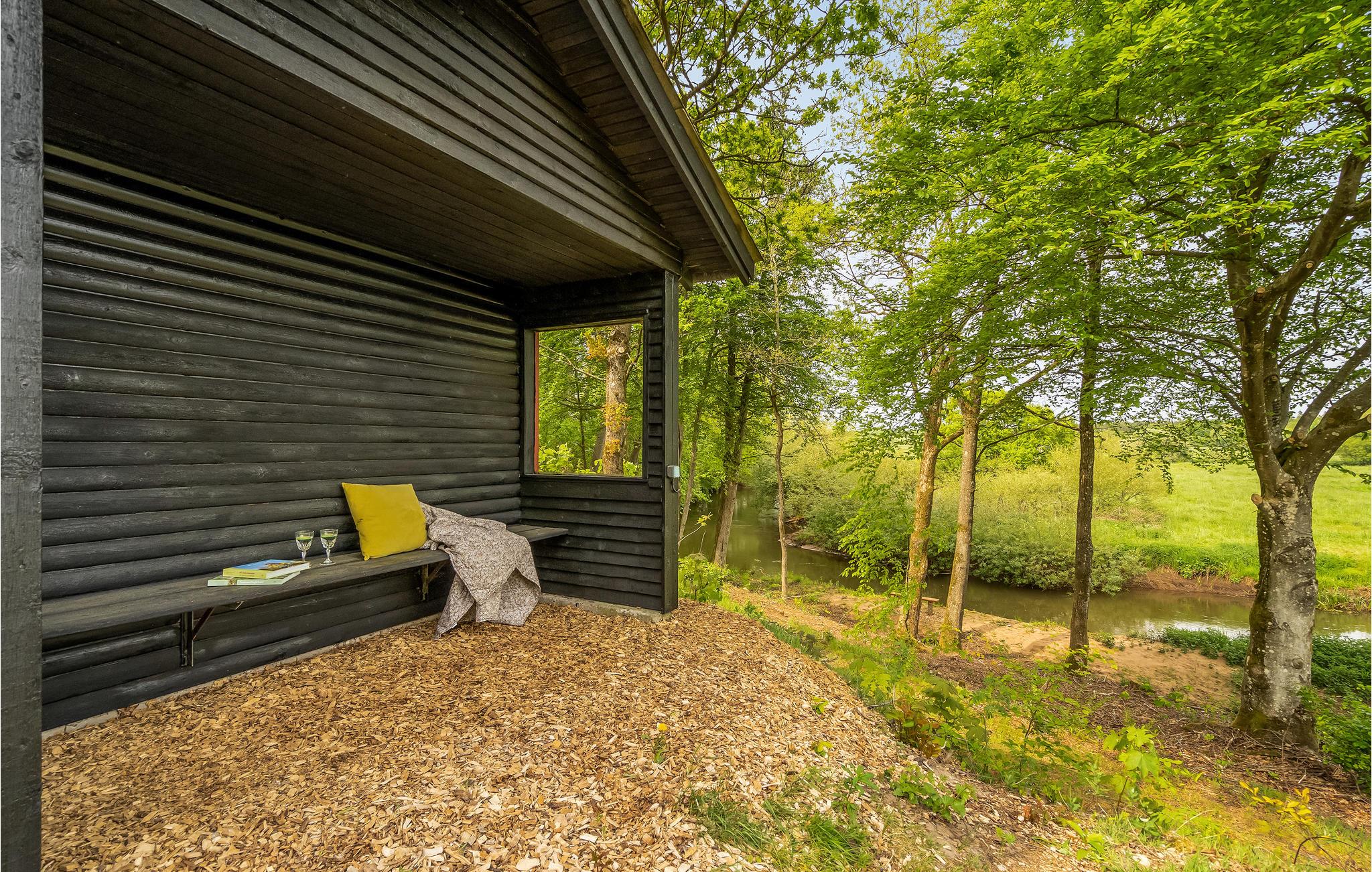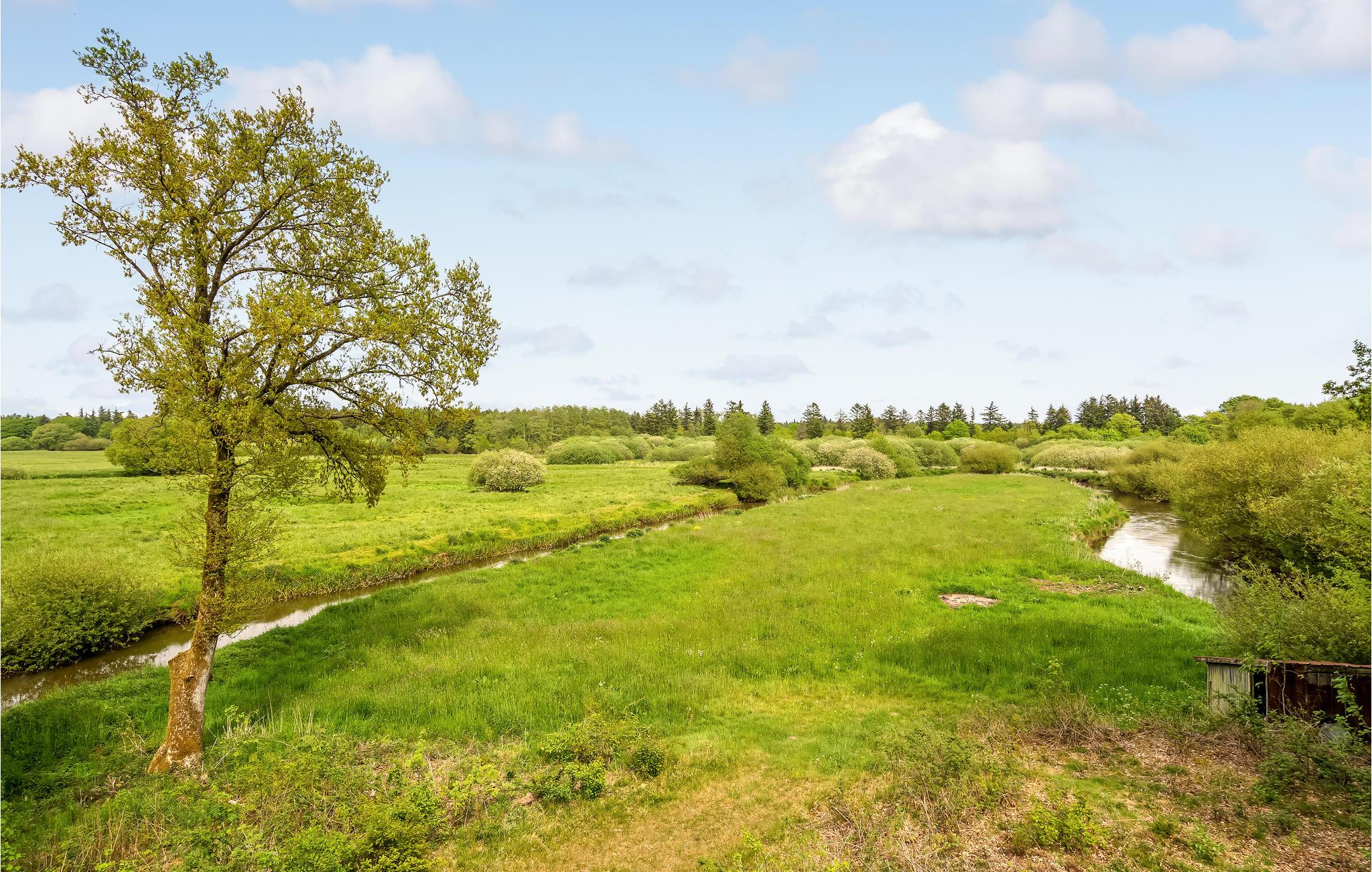 Træd ud på den overdækkede terrasse og begynd dagene på en afslappet måde. Tag plads ved det hyggelige havebord og nyd jeres måltider med uhindret udsigt over den omkringliggende natur. Se Storeåens blide flow lige ved huset eller følg den lille sti langs vandet.
