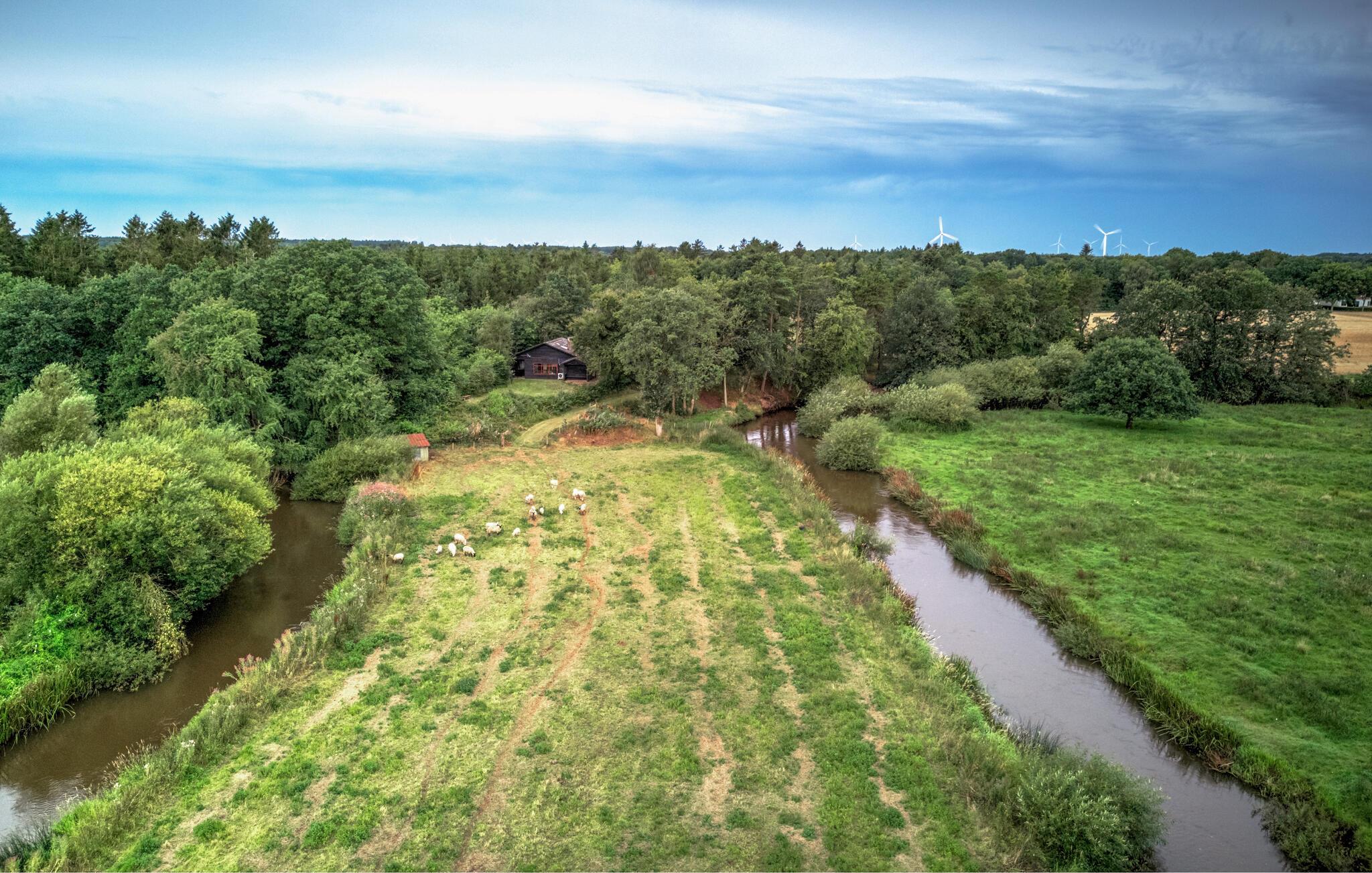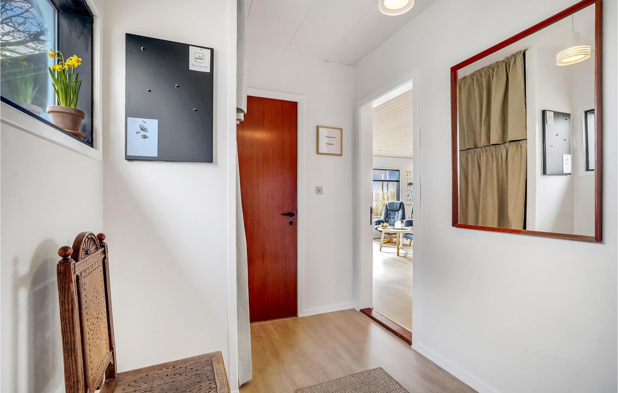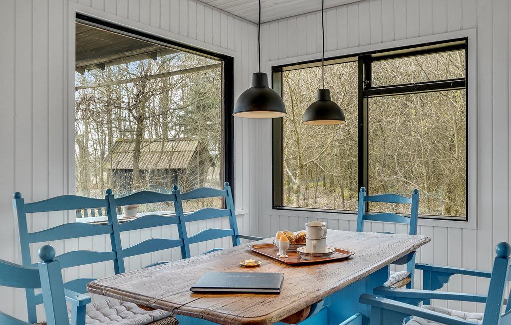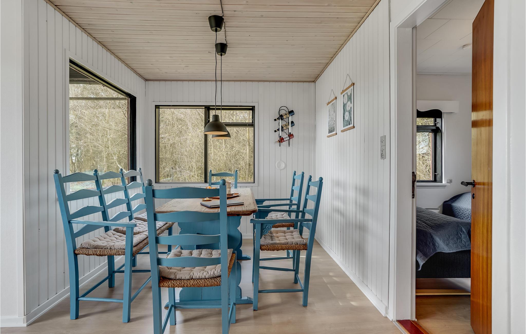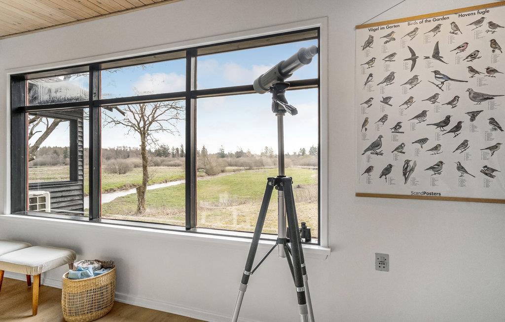 Træd ind i den lyse opholdsstue og lad blikket vandre gennem de store panoramavinduer over det vidtstrakte landskab. Sæt jer til rette i den komfortable sofa og nyd afslappende timer med udsigt over de grønne områder. Den indbydende indretning med lyse trælofter og omhyggeligt udvalgte detaljer skaber en rolig og hyggelig atmosfære. Tag plads ved spisebordet og begynd dagene med en lækker morgenmad. Tilbered jeres måltider i det funktionelle køkken, som tilbyder alt, hvad I behøver for et problemfrit ophold. Udnyt de stille øjeblikke til at læse en bog eller blot nyde freden og roen.