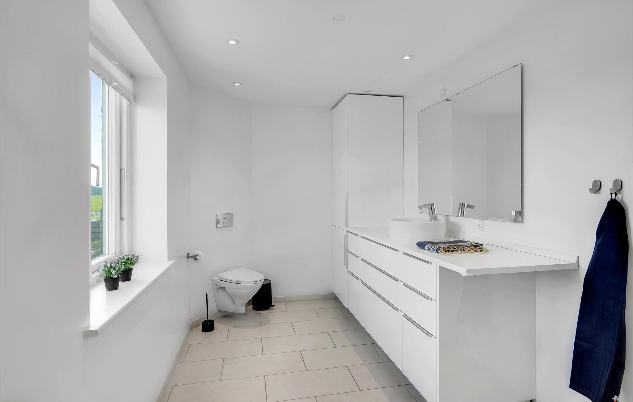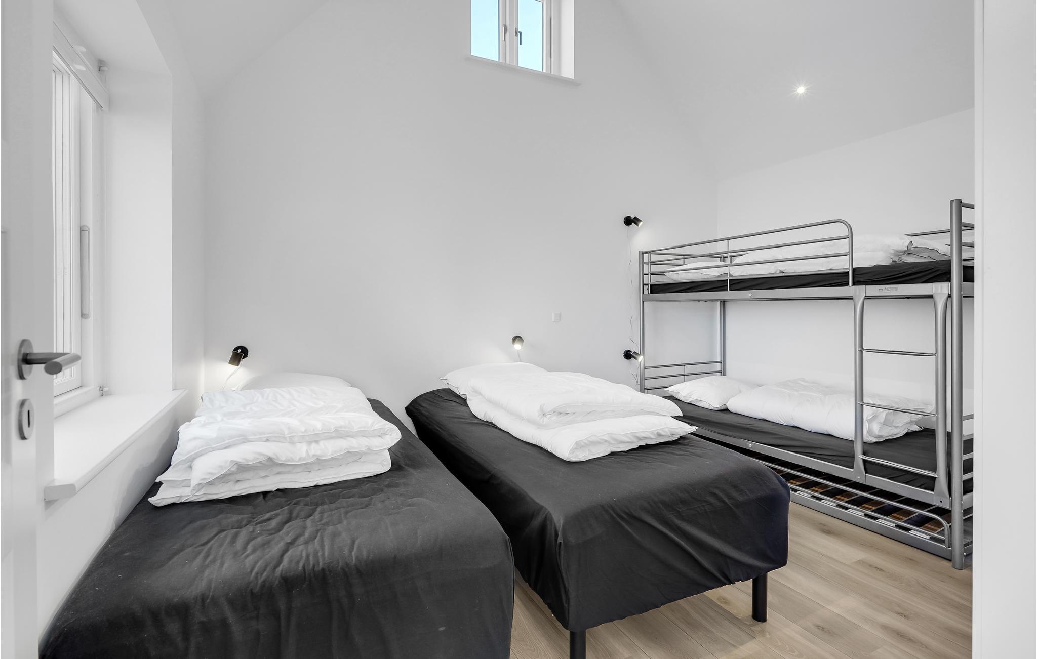 Dette attraktive og rummelige feriehus byder op til otte gæster velkommen med sine tre soveværelser, en åben hems, et badeværelse og en stue med køkken. Gennem de store vinduer, som slipper dejligt meget dagslys ind i huset, kan I nyde panoramaudsigten over fjorden hele dagen.