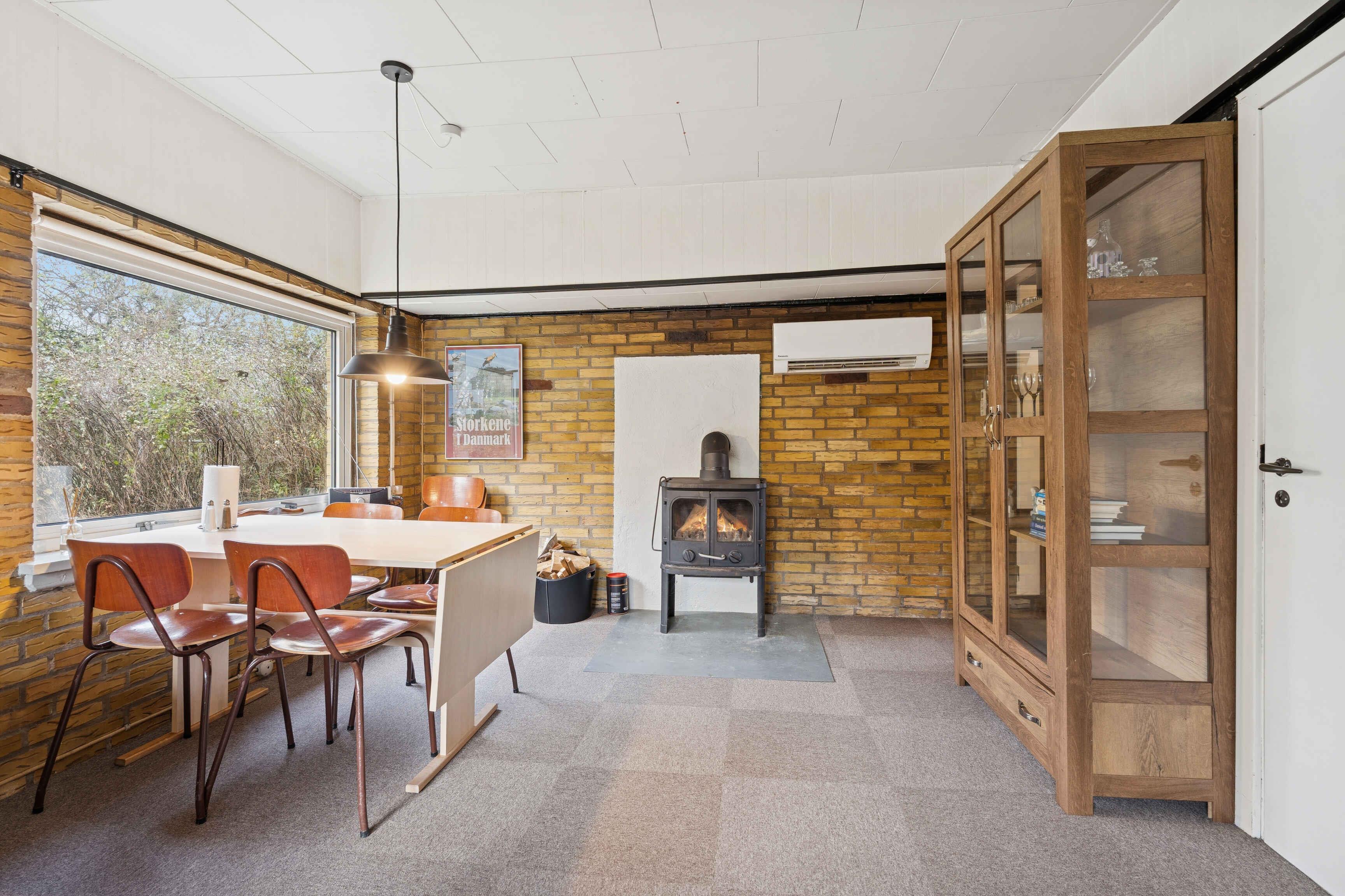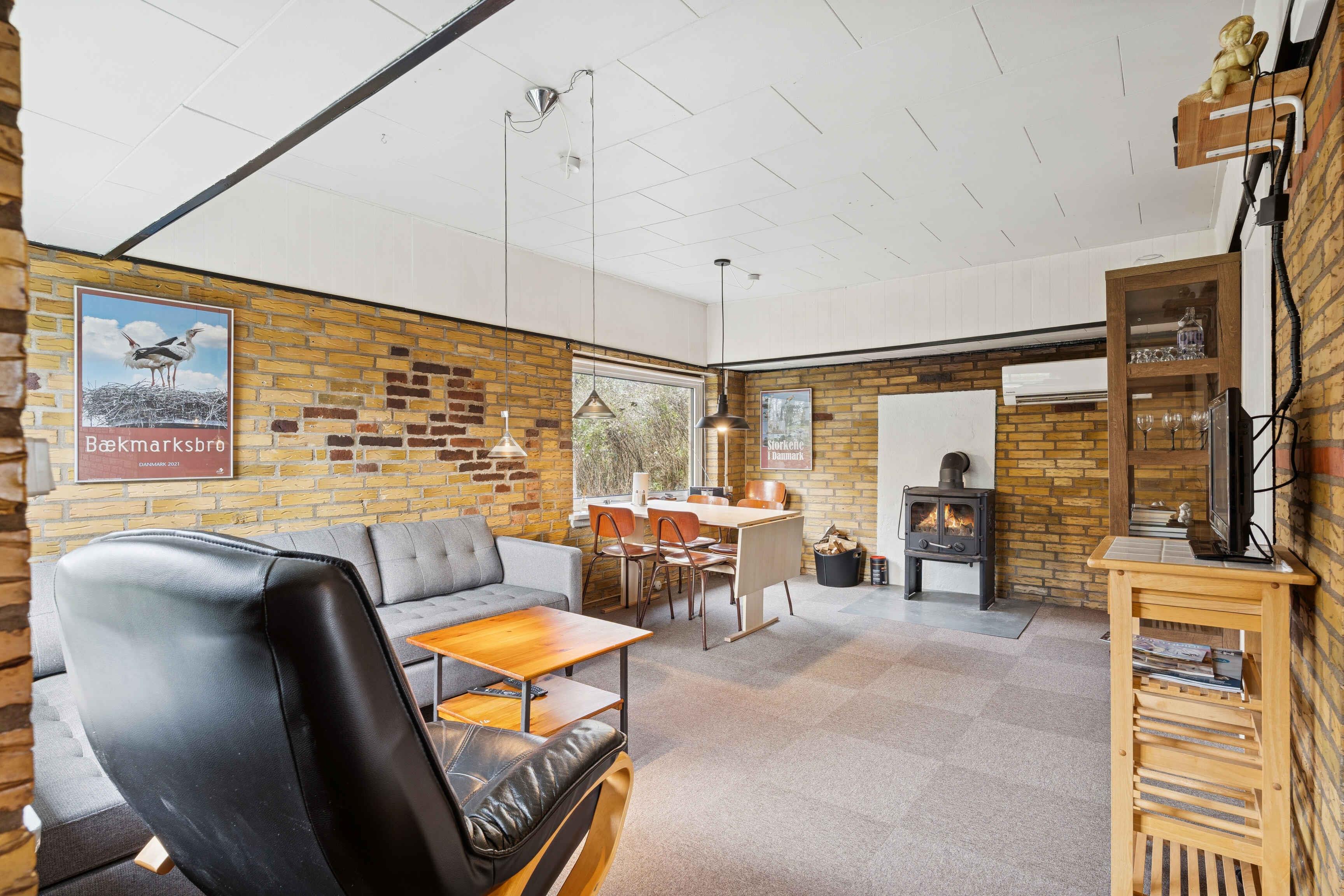 Dette hyggelige sommerhus på 50 m² er et oplagt valg for par eller den lille familie, der ønsker en rolig ferie med naturen tæt på. Huset rummer ét soveværelse og i alt fem sovepladser, så der er plads til både overnatning og afslapning. Indretningen er funktionel og indbydende med brændeovn og varmepumpe, som gør huset behageligt året rundt. Her findes et lille badeværelse med bruseniche samt et køkken med komfur, mikroovn, køle-/fryseskab og bordopvaskemaskine. Derudover er der vaskemaskine, wifi, tv/DVD og radio. Fra huset er der kort afstand til dagligdagens bekvemmeligheder. Indkøb og Tangsø Centret med svømmehal, wellness, motionscenter, hal og udendørs padel nås på få minutter. Togforbindelser giver let adgang til Vemb, Lemvig og Thyborøn, og Klosterhedens store naturområder ligger inden for overskuelig køreafstand. Området omkring huset er en oplevelse i sig selv og byder på cirka 100 ords feriekvaliteter i ren natur. Huset ligger direkte ned til Flynder Å, hvor der er mulighed for at fiske og nyde livet langs vandet. Her præges ferien af ro, åbne vidder og skiftende årstider. Dyrelivet er rigt og nærværende. Bævere ses ofte ved åen, og deres imponerende dæmninger er fascinerende at opleve. Traner, rådyr og ænder er en del af hverdagen, og om aftenen kan flagermus vise sig. I efteråret kan man høre kronhjortenes brøl, hvilket giver opholdet en helt særlig stemning.