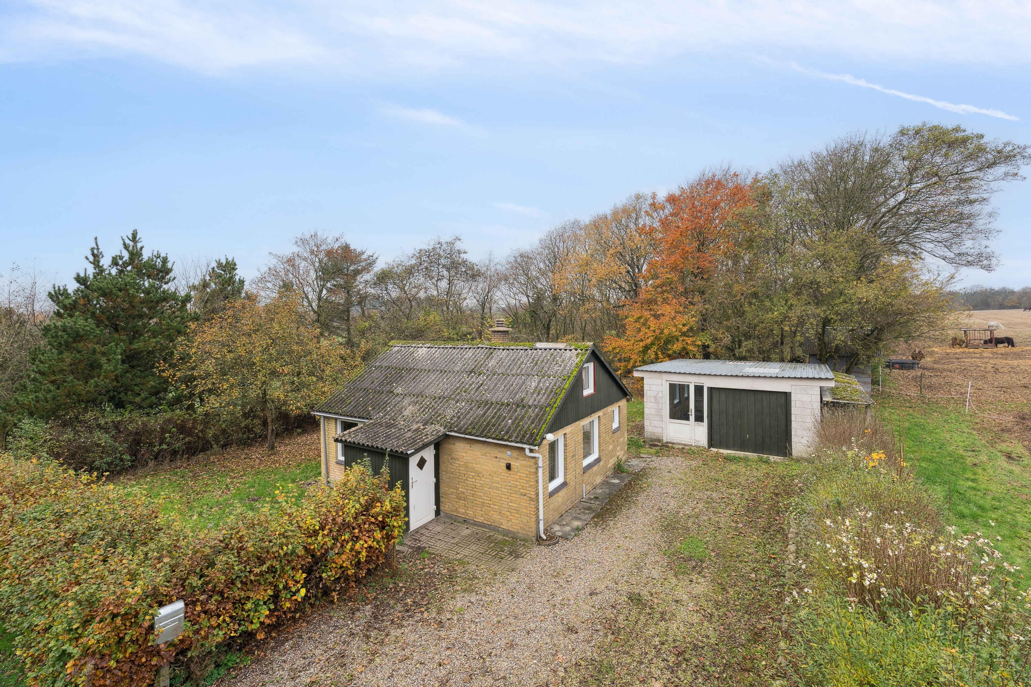 Hyggeligt sommerhus ved Flynder Å med brændeovn, varmepumpe og naturskønt område fyldt med dyreliv.