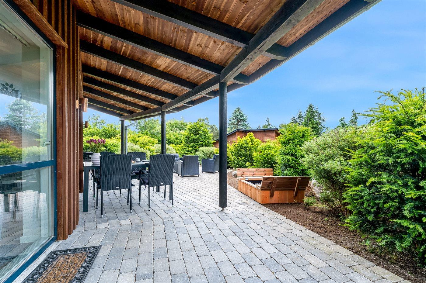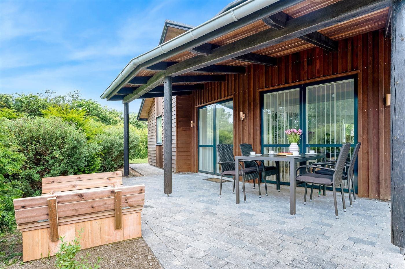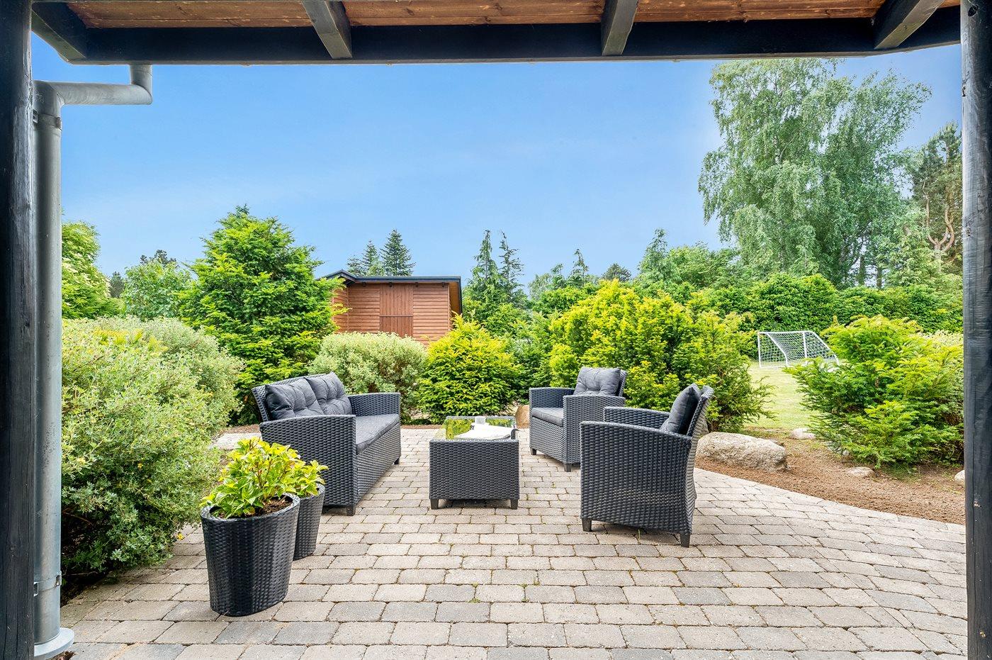 Ved huset er der en skøn have med overdækket terrasse og et åbent område, hvor der er en hyggelig morgenterrasse samt en stor terrasse med udsigt til haven. Her er grill til rådighed.