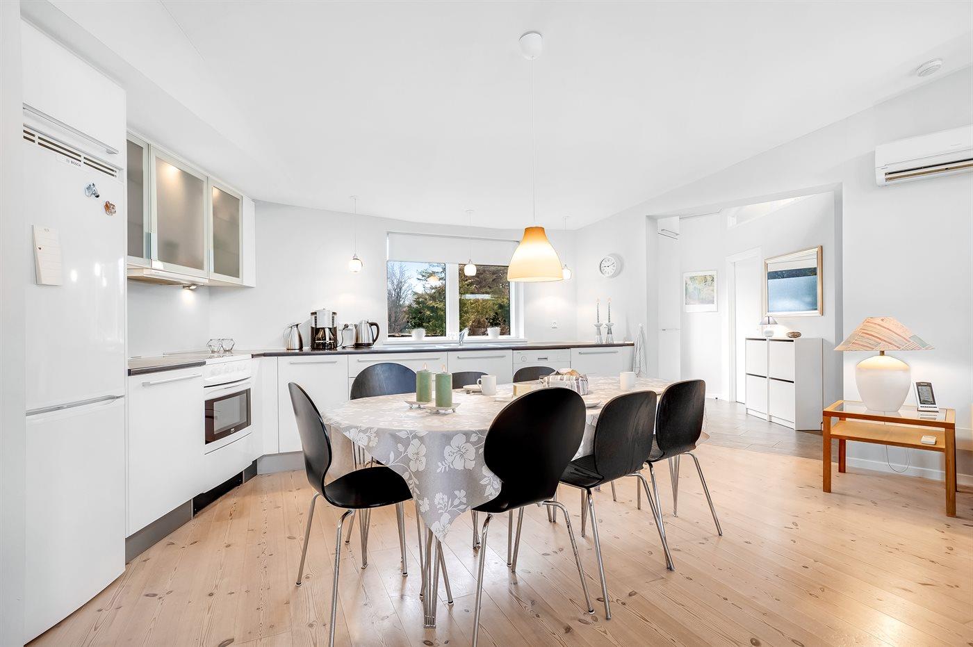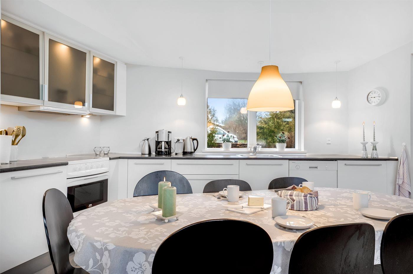 Køkkenet er udstyret med 1 køleskab. Der er 4 keramiske kogeplader, varmluftovn, mikrobølgeovn samt opvaskemaskine.