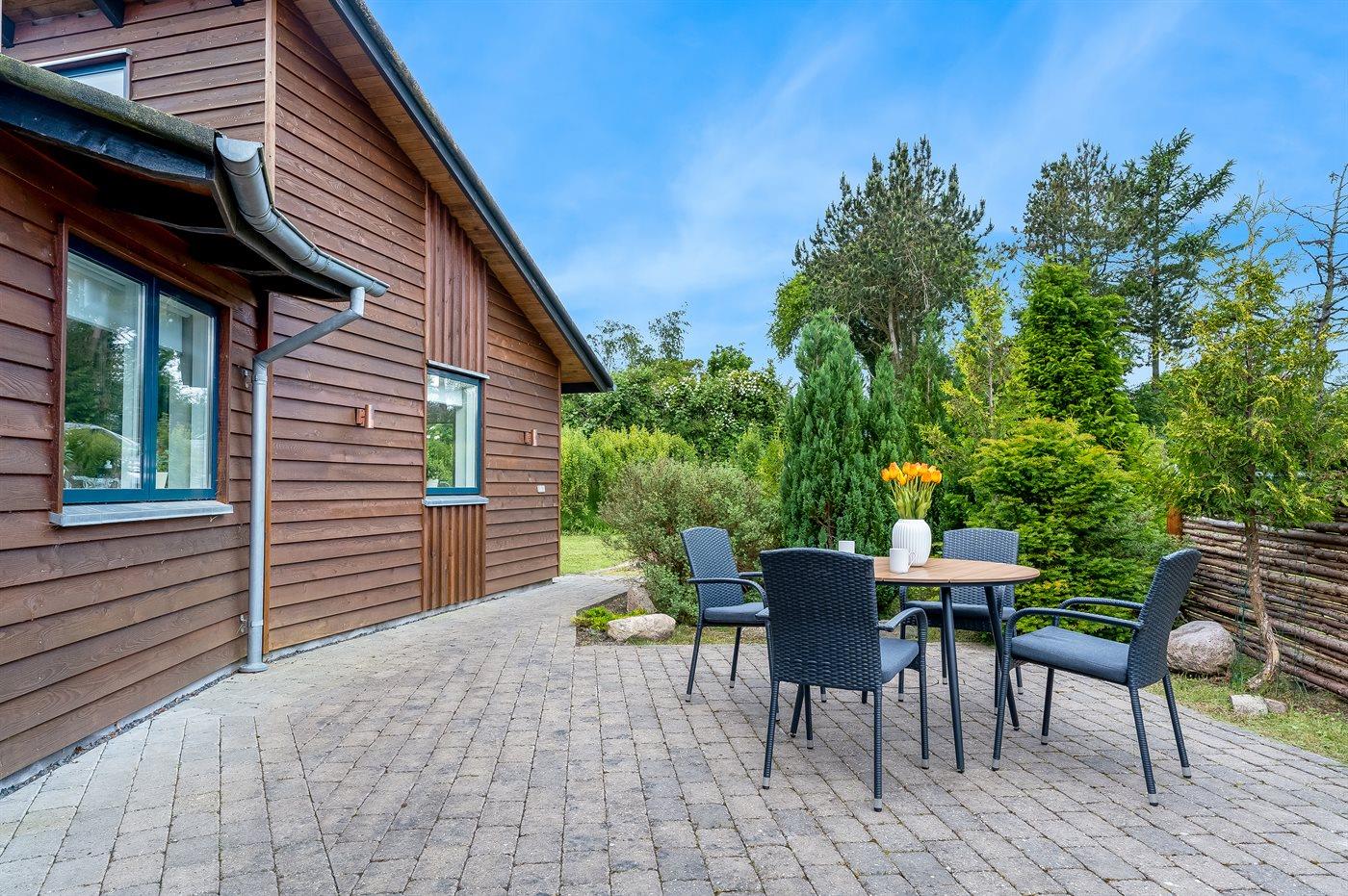 Ferieboligen er beliggende på en 1280 m² stor naturgrund. Der er 250 m til havet. Der er en badebro i nærheden. Nærmeste forretning er beliggende i en afstand af 9000 m. Til ferieboligen hører åbent terrasseareal. Desuden er der overdækket terrasse. Der er redskabsrum. Sandkasse. Fodboldmål. Bålsted. Grill til rådighed. Parkering ved ferieboligen.