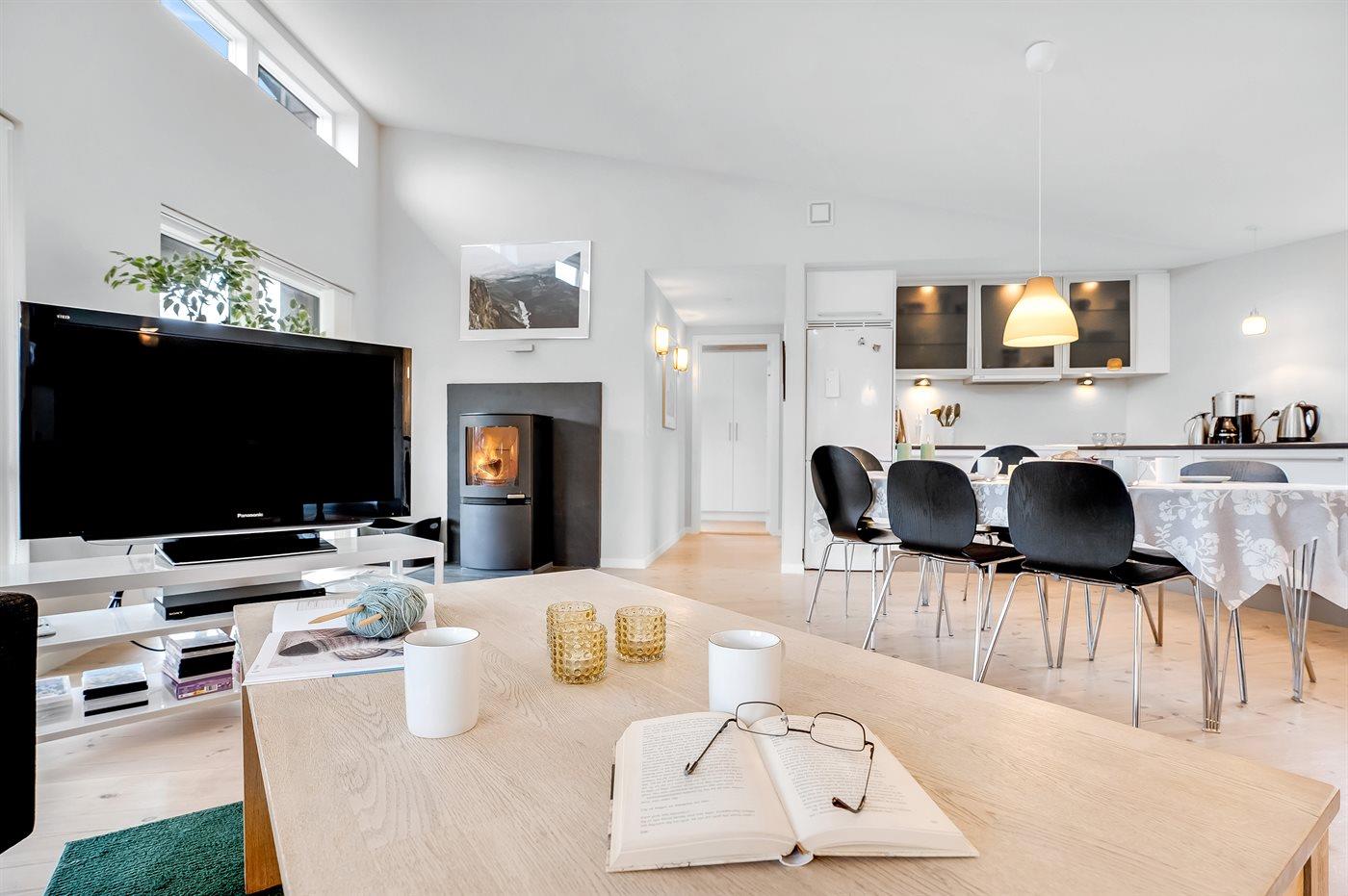 I dette sommerhus føler man sig hjemme med det samme. Her er højt til loft, lyst og venligt. Der er bl.a. luft/luft varmepumpe, brændeovn, tv med Chromecast, og man kan streame via internettet, som er gratis. Husk at medbringe computer eller iPad selv.