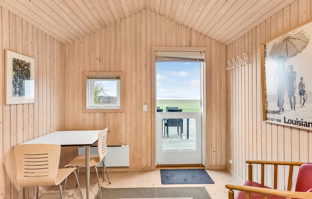 Velkommen til dette hyggelige, rummelige og lyse feriehus, der med åbent til kip og flotte trægulve, vægge- og lofter oser af feriestemning. Selv på kolde dage kommer der meget lys ind gennem de store vinduespartier. Efter en rask gåtur kan I tænde op i brændeovnen eller smutte en tur i saunaen, og om aftenen kan I flade ud i den bløde sofa og se en god film på fladskærmen eller afslutte dagen med en kølig drink i spabadet.