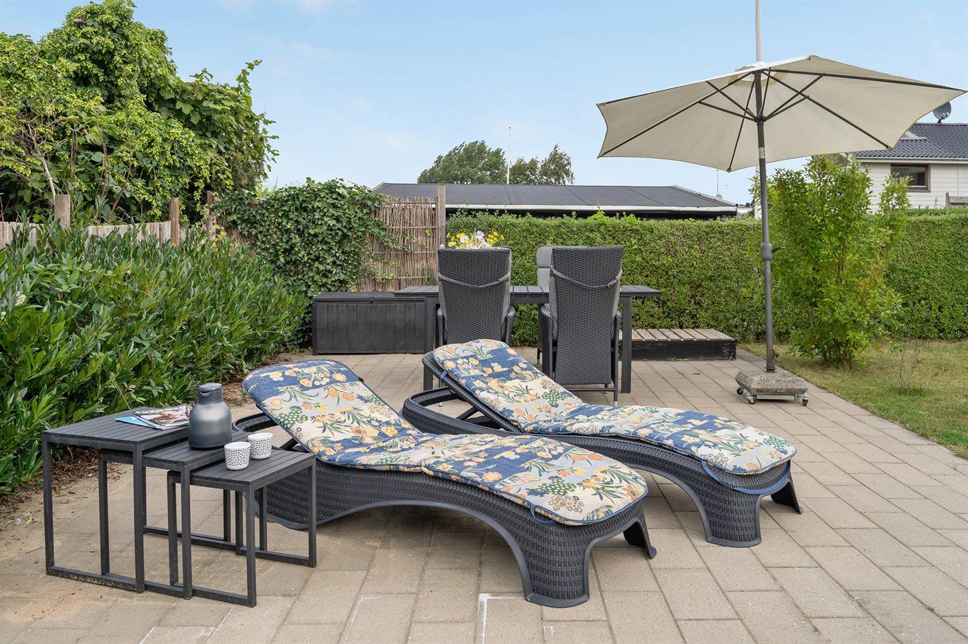 Ferieboligen er beliggende på en 525 m² stor havegrund. Der er 200 m til havet. Nærmeste forretning er beliggende i en afstand af 2000 m. Til ferieboligen hører 40 m² terrasseareal. Desuden er der 30 m² overdækket terrasse. Sandkasse. Der er kulgrill til rådighed. Parkering ved ferieboligen.