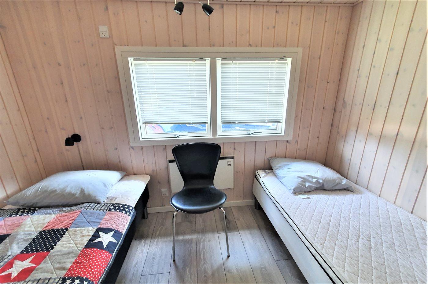 Der er i alt 3 soveværelser. Sovepladserne fordeler sig på: 2 sovepladser i dobbeltseng. 4 sovepladser i enkeltsenge. Derudover er der 1 stk. barneseng.