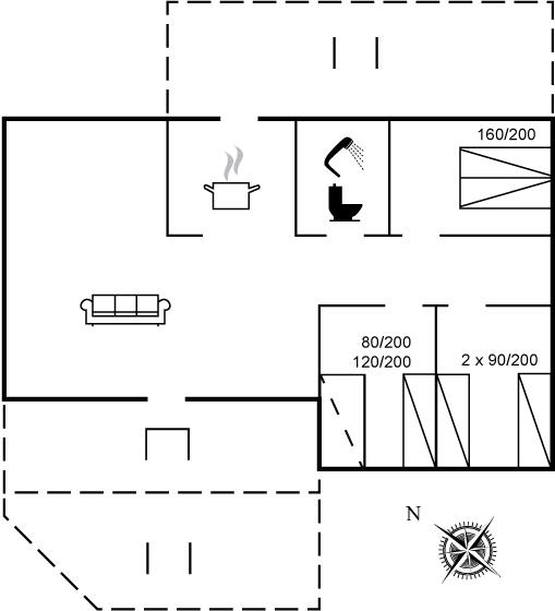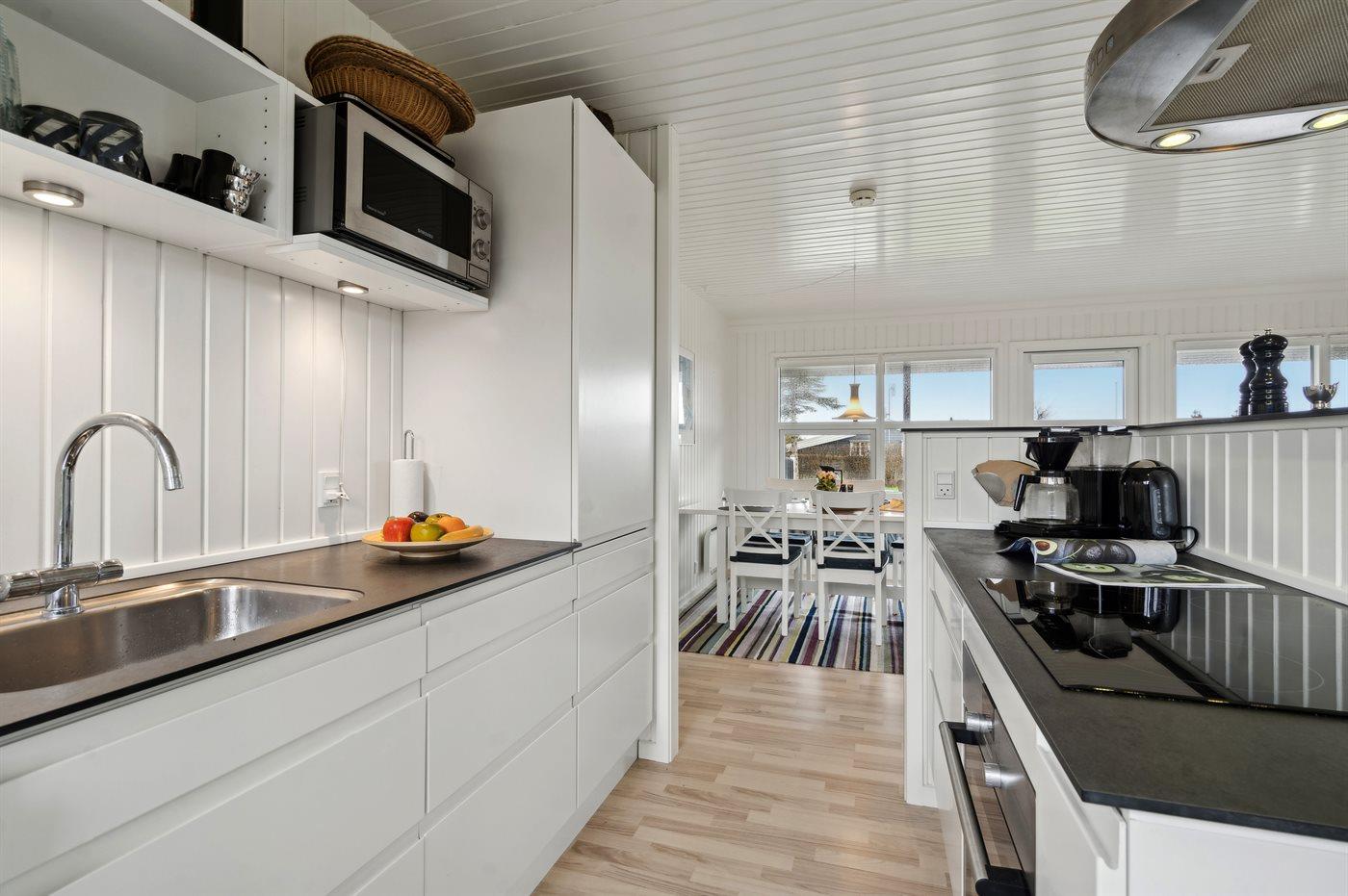 Køkkenet er udstyret med 1 køleskab. Der er 4 induktionskogeplader, varmluftovn, mikrobølgeovn samt opvaskemaskine.