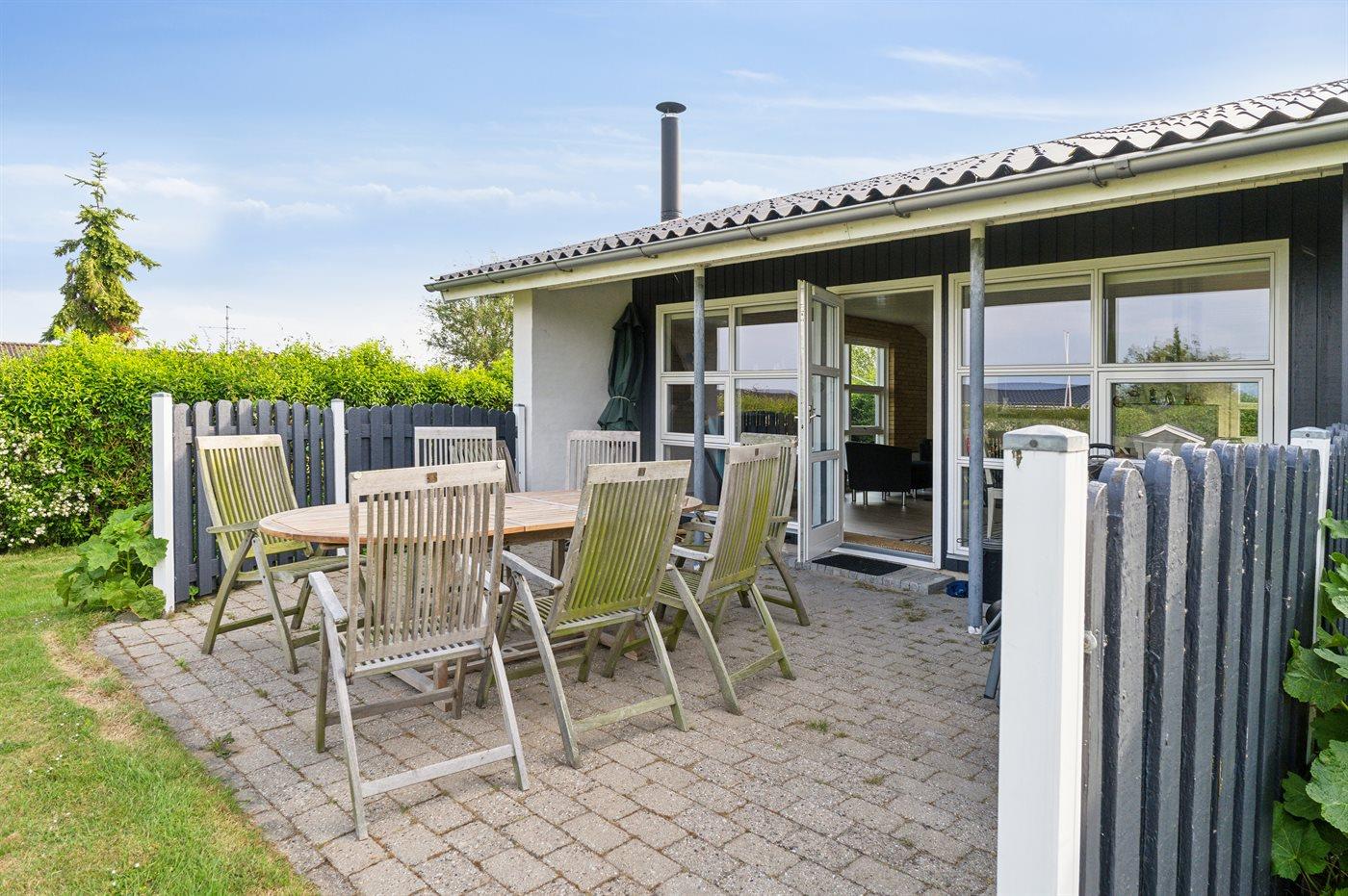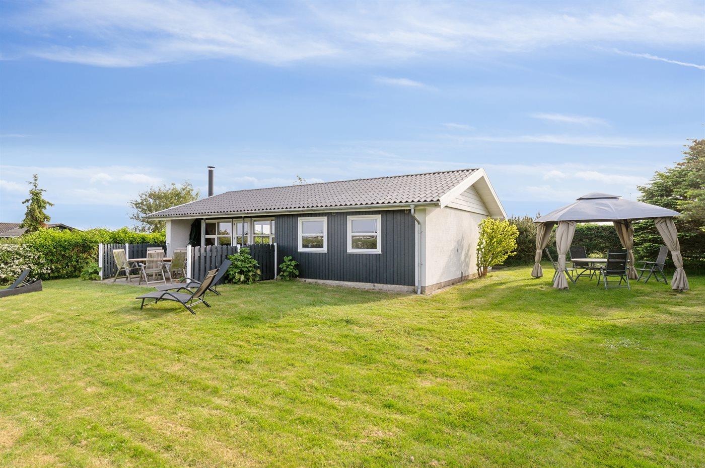 Ferieboligen er beliggende på en 1600 m² stor havegrund. Der er 250 m til havet. Der er en badebro i nærheden. Nærmeste forretning er beliggende i en afstand af 3400 m. Til ferieboligen hører åbent terrasseareal. Desuden er der overdækket terrasse. Fodboldmål. Grill til rådighed. Parkering ved ferieboligen.