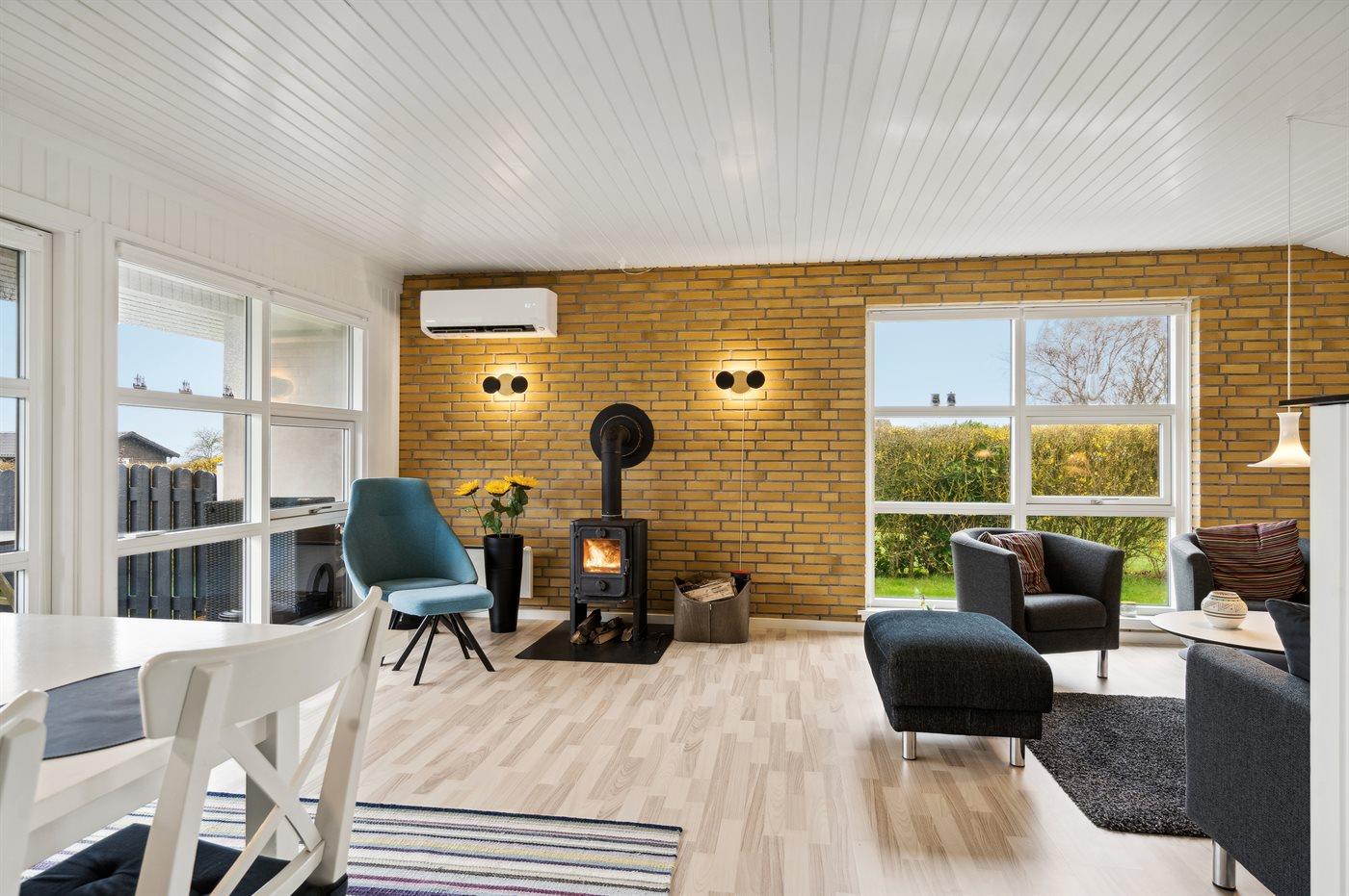 Huset er lyst og moderne indrettet og ligger på en dobbeltgrund, så her er god plads til udendørs aktiviteter. Fra huset og terrassen er der kig ud over Helnæsbugten.