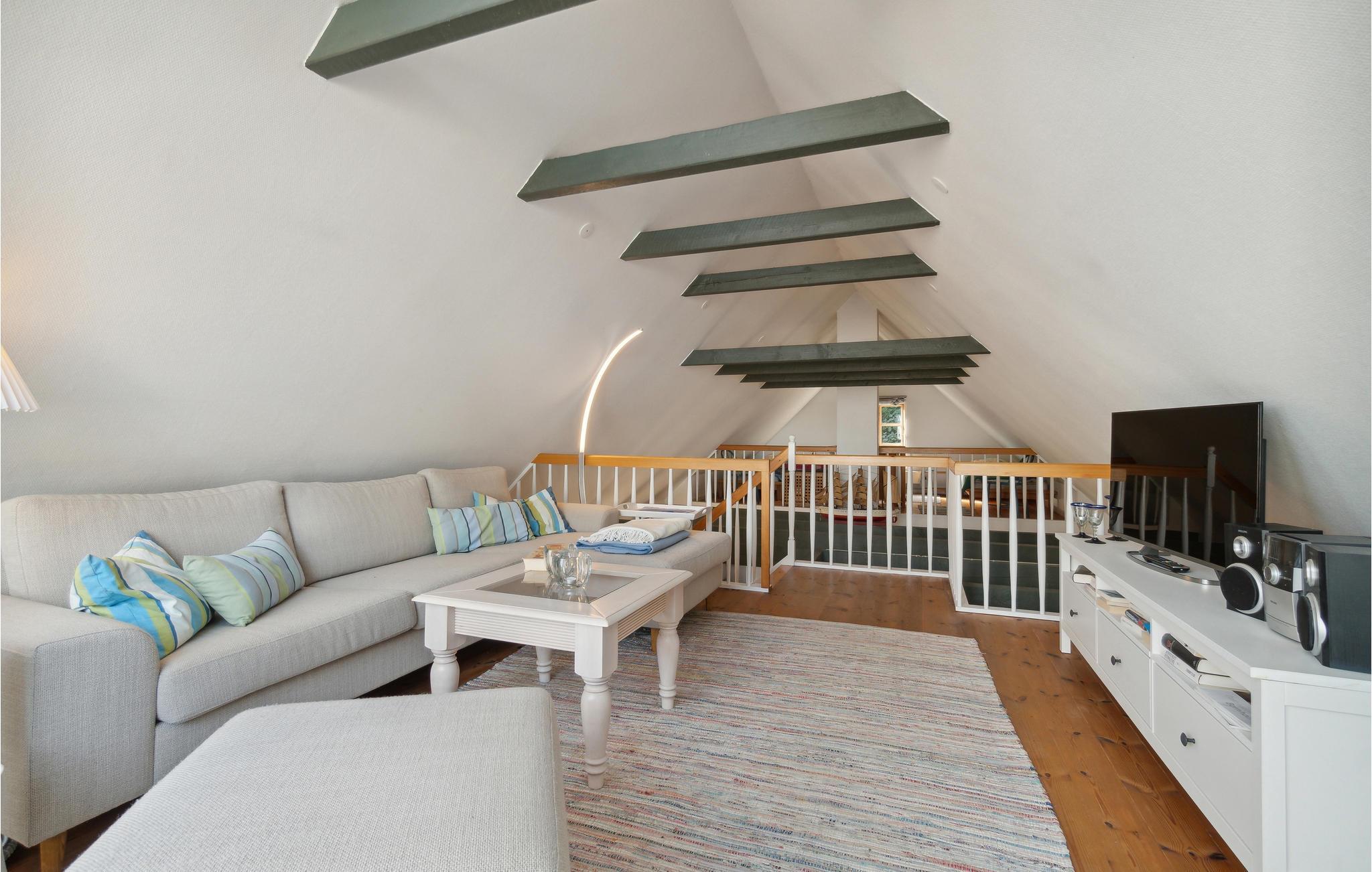 Velkommen til denne helt igennem skønne lejlighed, som giver jer en herlig ramme om familieferien på Bornholms østkyst. Boligen er fordelt over to etager og præsenterer sig lyst og velindrettet, hvilket skaber en skøn oase, hvor I kan slappe af mellem dagens udflugter. Lejligheden er forsynet med store vinduespartier, så I har den flotte udsigt med jer, når I samles om de hyggelige fællesaktiviteter. Tænd op i brændeovnen efter en frisk tur ned til stranden, læn jer tilbage i de bløde møbler og find sammen om en god film før næste dags eventyr.