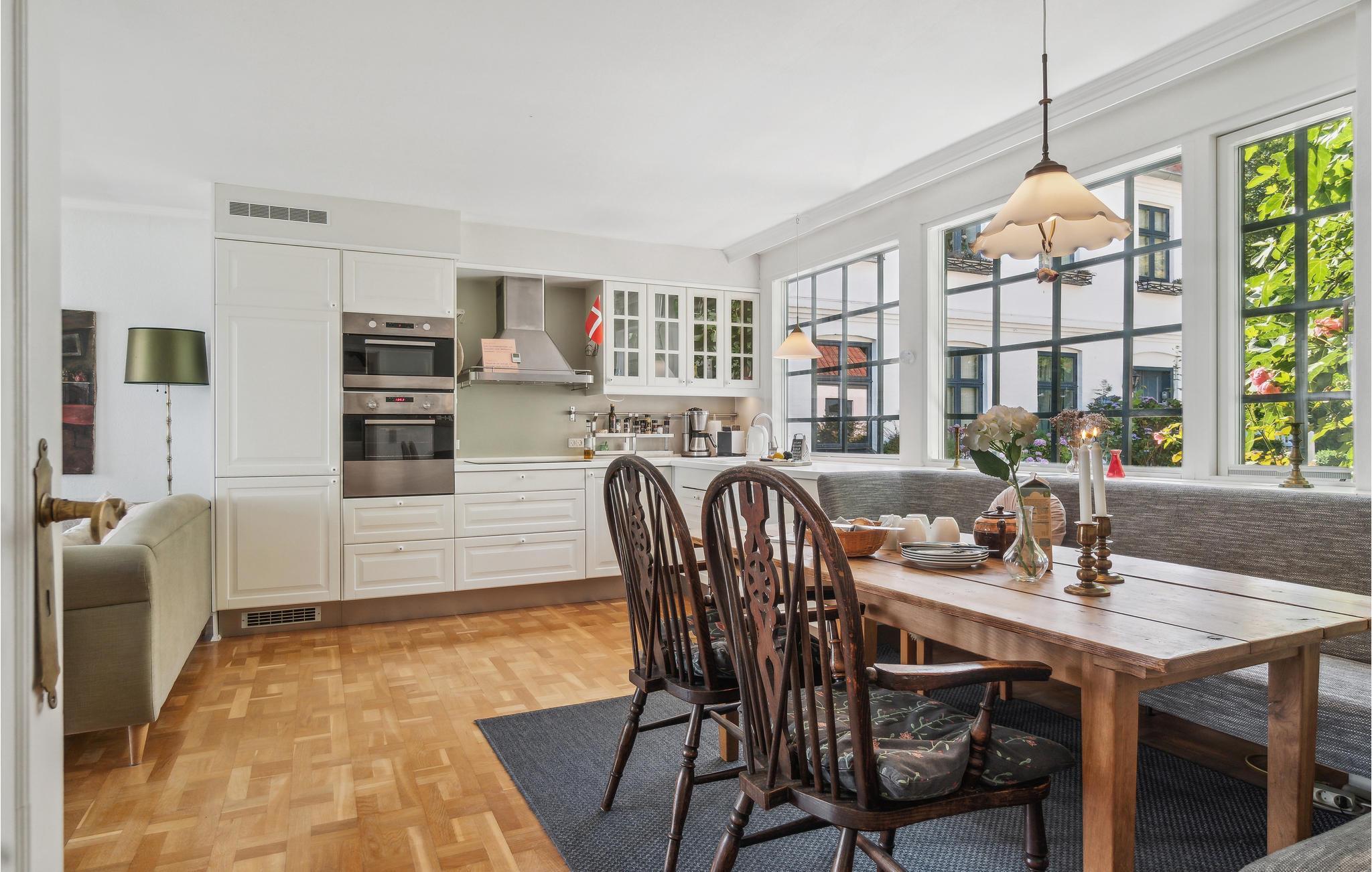 Velkommen til denne komfortable lejlighed, som venter på jer i første række til havet. Den hjemlige bolig vil danne rammen om jeres pause fra hverdagens trummerum på hyggeligste vis. Man mærker med det samme, at rummene er indrettet og dekoreret med kærlighed. Nyd havets skønhed, så snart I vågner, og når I kommer hjem fra stranden eller en spændende udflugt. Lav noget lækkert i køkkenet sammen, sæt jer godt til rette ved sprossevinduerne og dyst i eftermiddagens kortspil. På kølige dage spreder brændeovnen varme og hygge, og på de varme dage kan I rykke morgenmaden udenfor på den fælles balkon. Nogle få skridt fører jer til klippekysten, som indbyder til en forfriskende dukkert i havet.