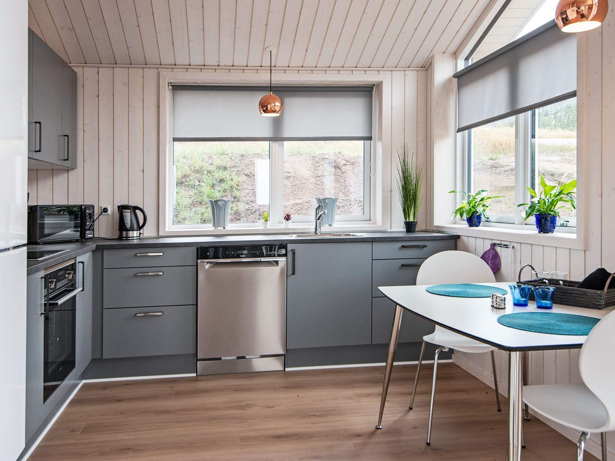 Det veludstyrede køkken og den tilstødende spiseplads danner et lyst og imødekommende omdrejningspunkt for familielivet, ideelt til fælles måltider og hyggelige sammenkomster. Store vinduer og en åben planløsning tillader naturligt lys at fylde hjemmet, hvilket forstærker dets varme og indbydende atmosfære. Uanset om du tilbereder et hjemmelavet måltid eller blot nyder en kop kaffe, mens du nyder udsigten, er opholdsrummene designet til komfort og funktionalitet.